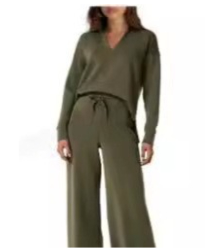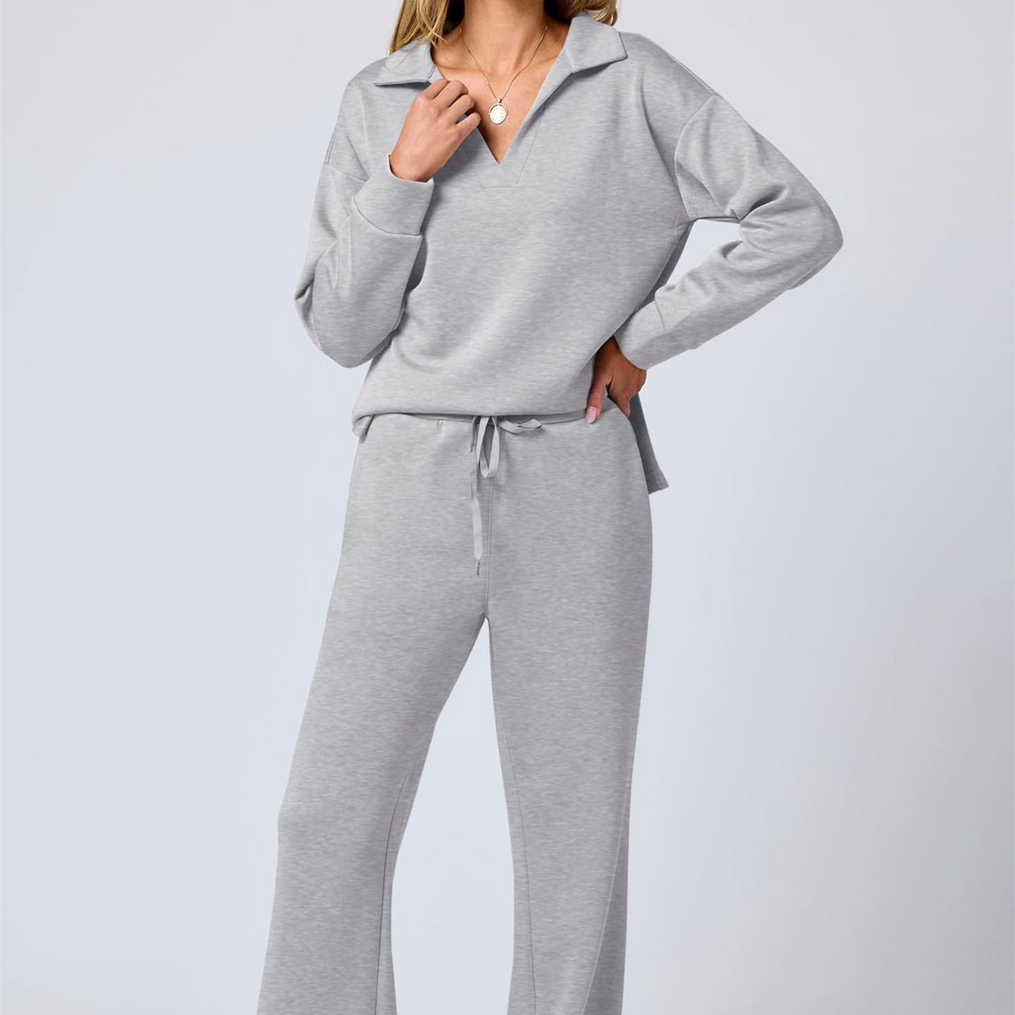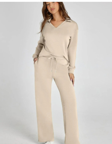 Casual Long Sleeve Drawstring Solid Color Commute Trousers Suit Women