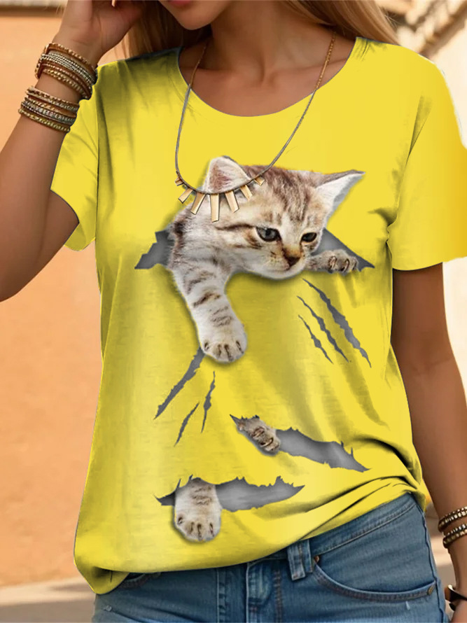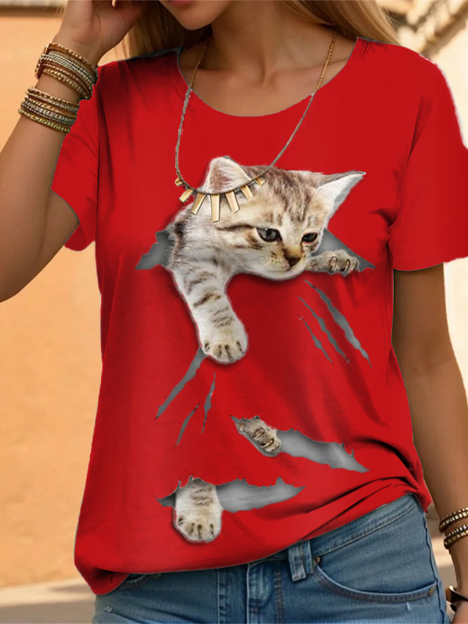 Casual Loose Cat Printing Short-sleeved Shirt