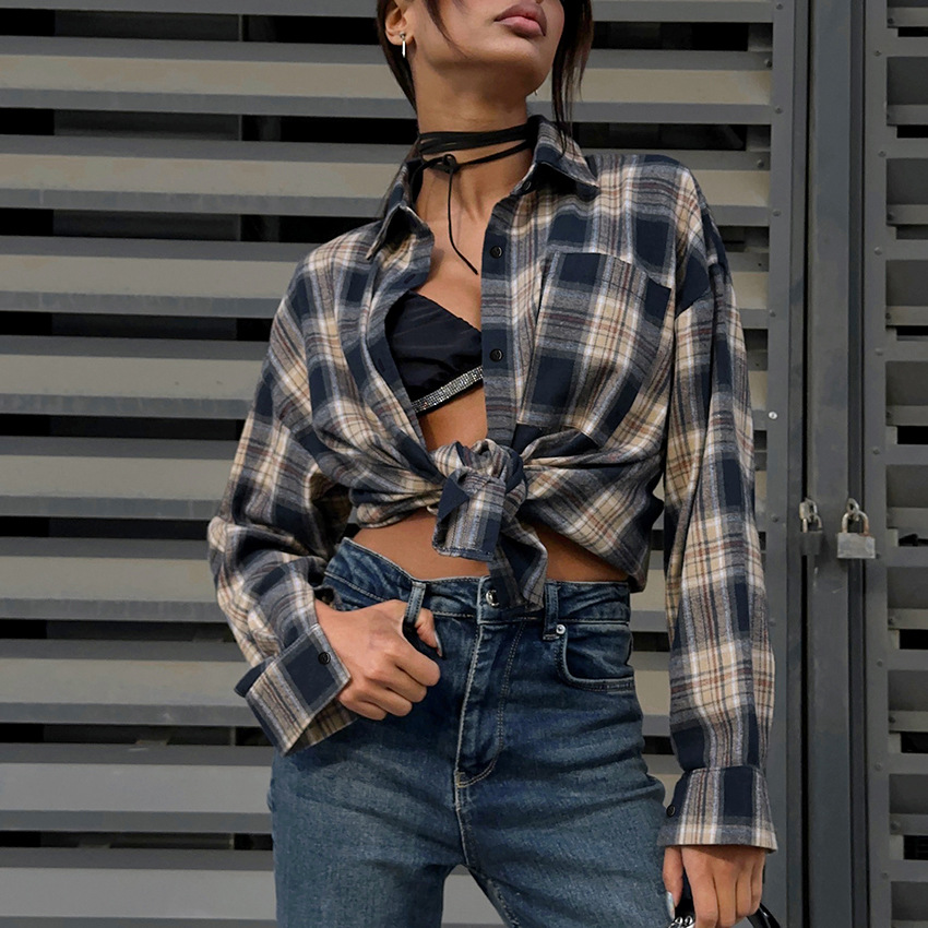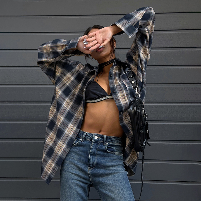 Casual Loose Color-contrast Check Shirt