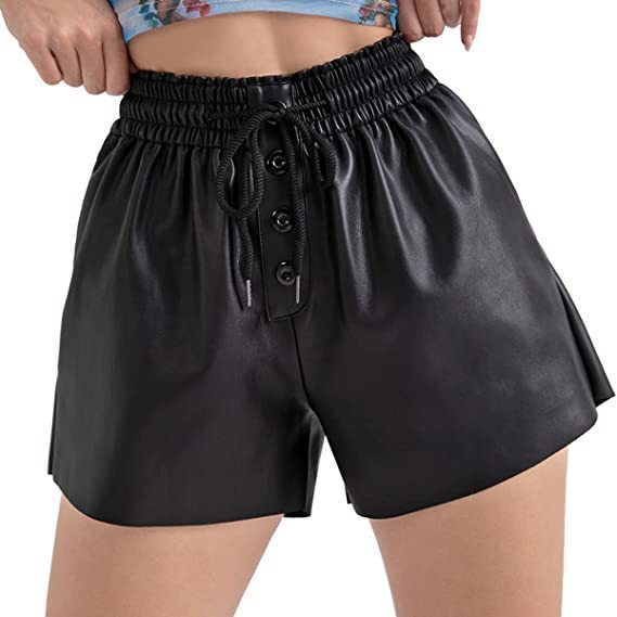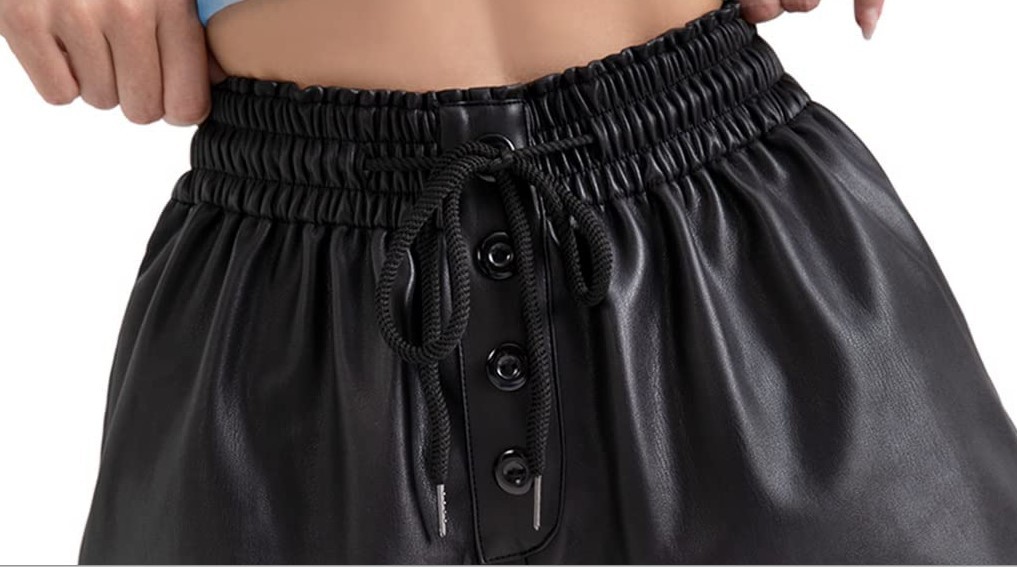 Casual Loose Drawstring Four Seasons Wear PU Elastic Leather Pants