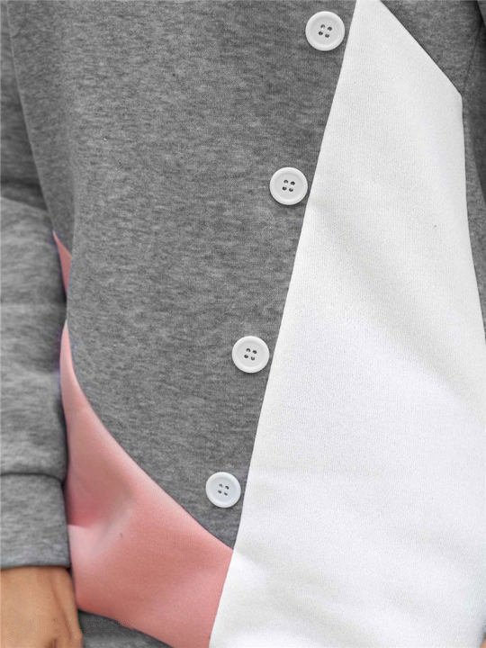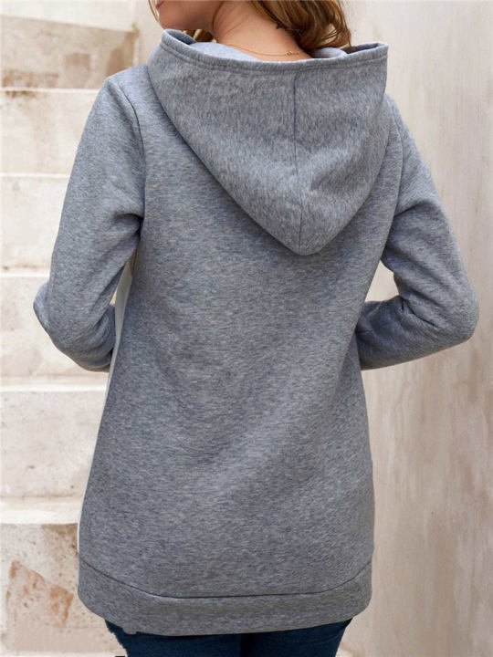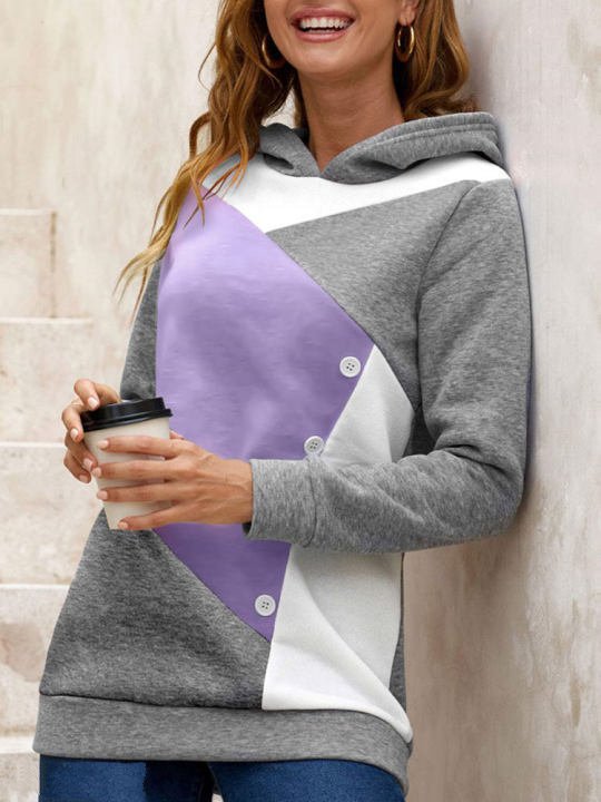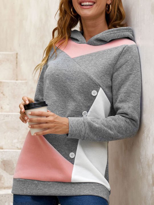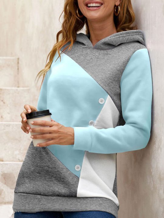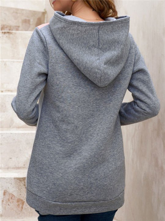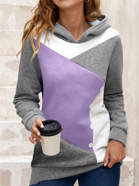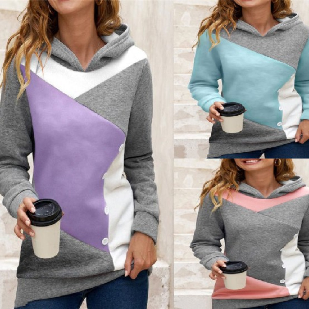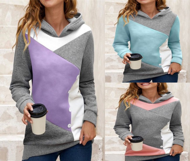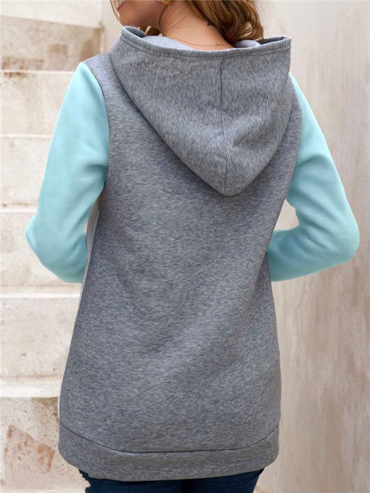 Casual Loose Hooded Color Contrast Women's Sweater Fleece Shirt