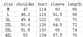 Size : M, L, XL, XXL, XXXL, XXXXL
