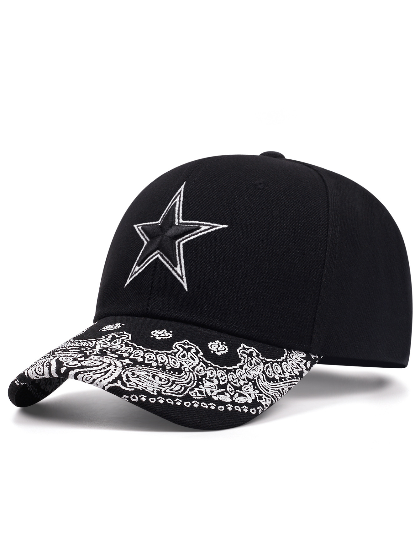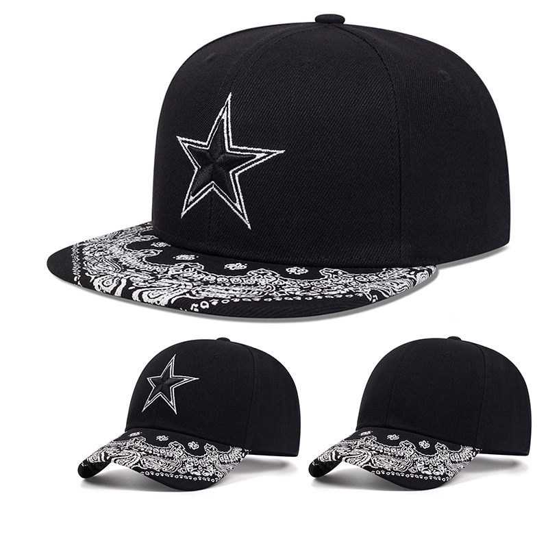 Color: Paisley brim solid color, five-pointed star Paisley, five-pointed star Paisley flat eaves cap