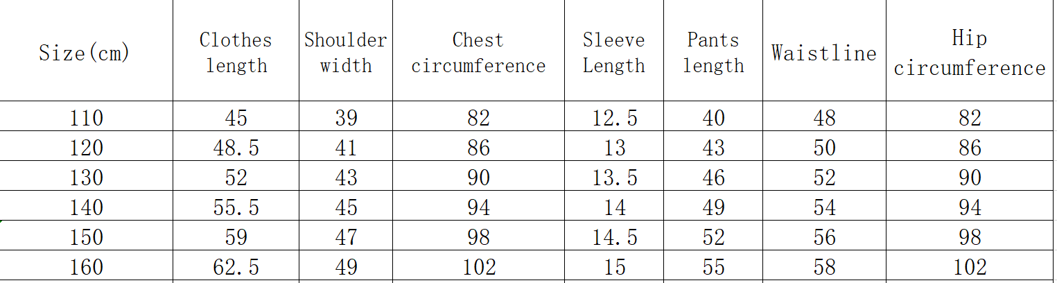 Reference height: 110cm, 120cm, 130cm, 140cm, 150cm, 160cm