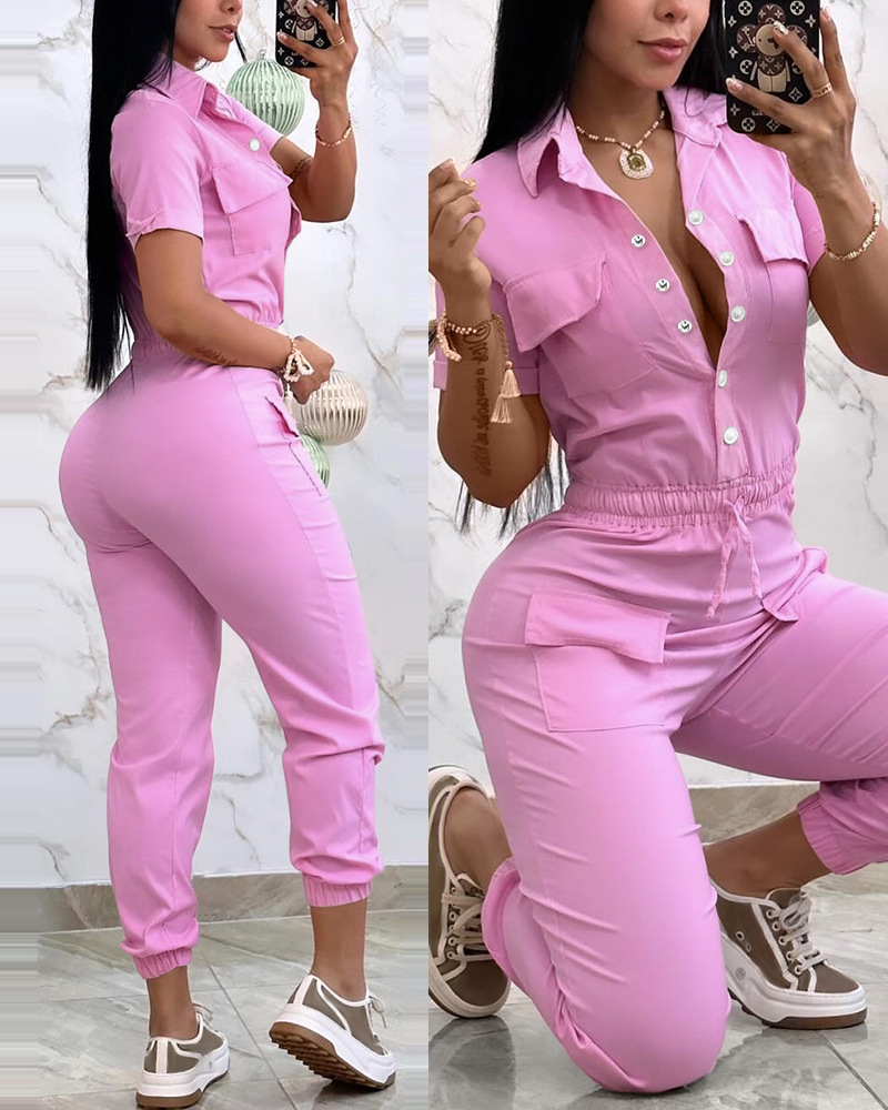 Casual Multi-pocket Waist Elastic Cargo Overalls
