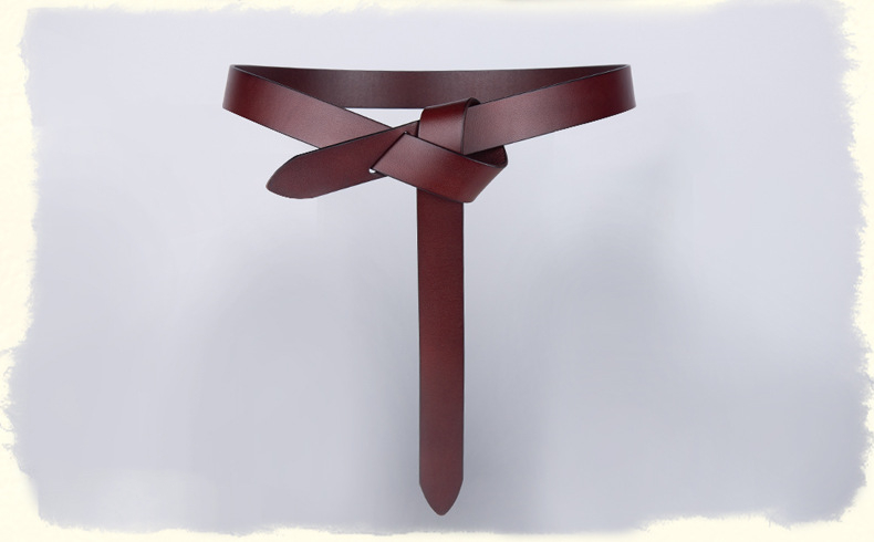 Material technology: headless knotted Italian first layer cowhide women's thin belt