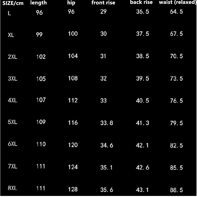 Size: L, XL, 2XL, 3XL, 4XL, 5XL, 6XL, 7XL, 8XL