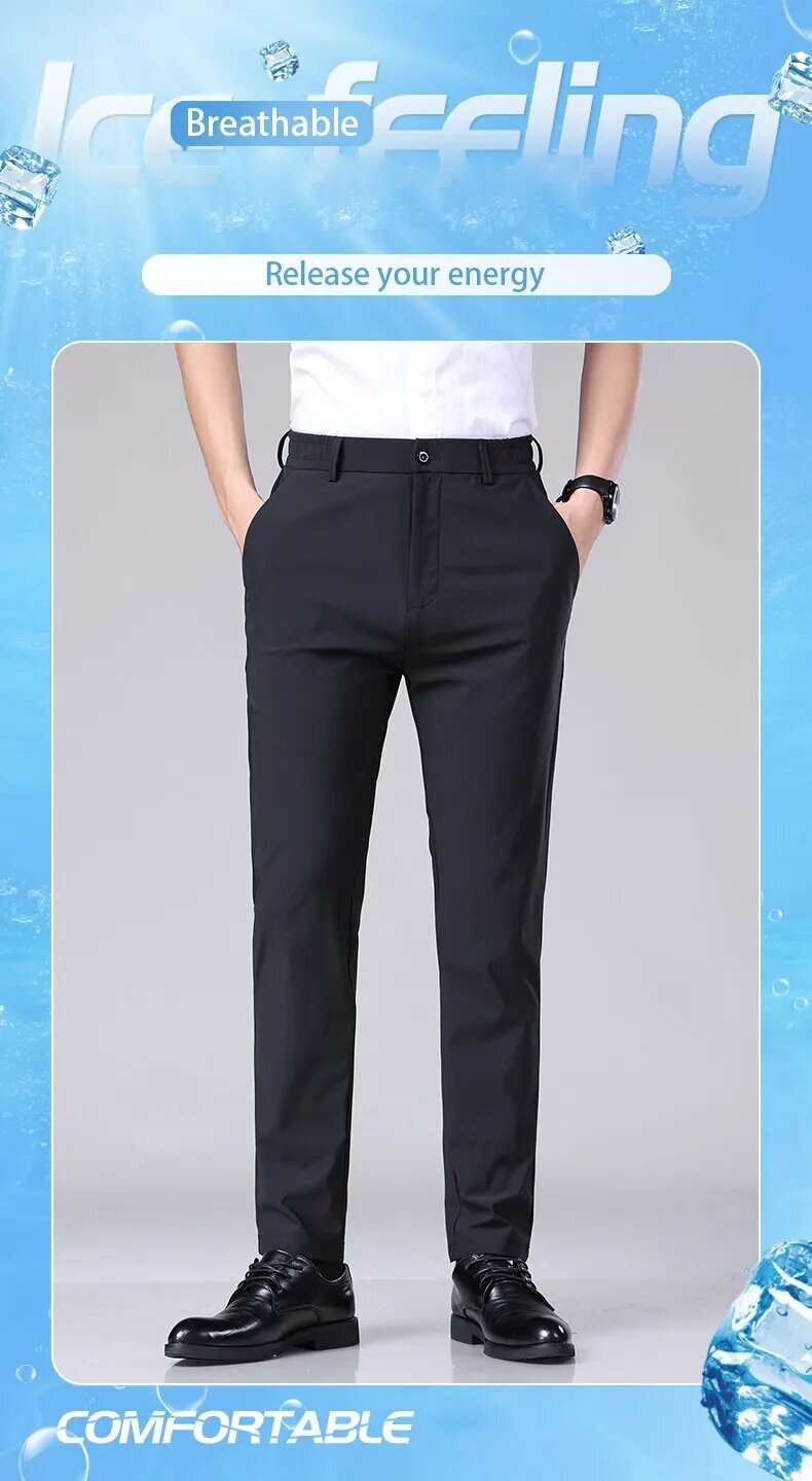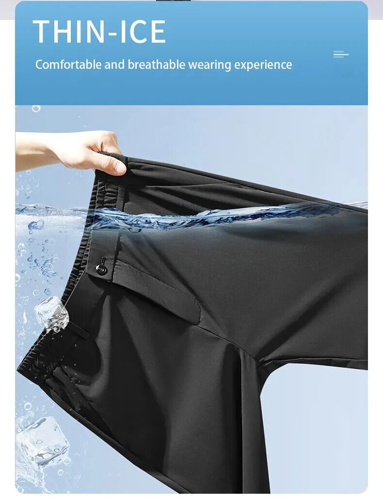 Color: Ice silk trousers [Navy Blue], ice silk trousers [Black], ice silk trousers [light gray]