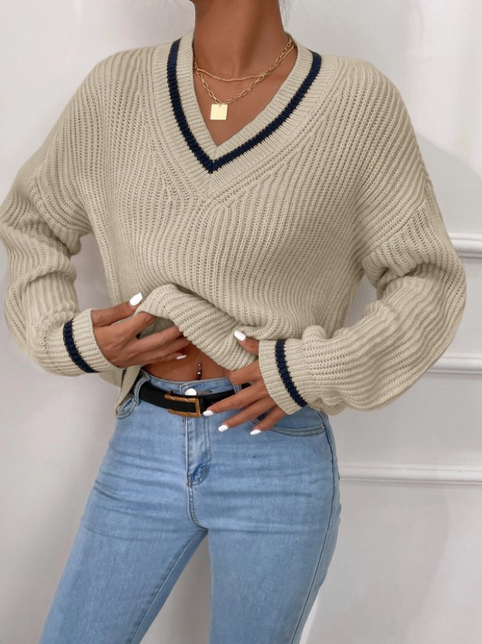 Casual Patchwork Contrast Color Loose Long Sleeve Women's Sweater