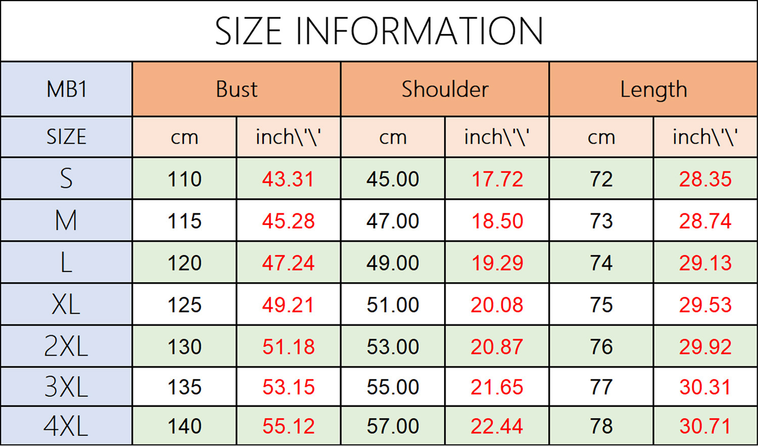 1. Asian sizes are 1 to 2 sizes smaller than European and American people. Choose the larger size if your size between two sizes. Please allow 2-3cm differences due to manual measurement. 2. Please check the size chart carefully before you buy the item, if you don't know how to choose size, please contact our customer service. 3.As you know, the different computers display colors differently, the color of the actual item may vary slightly from the following images.