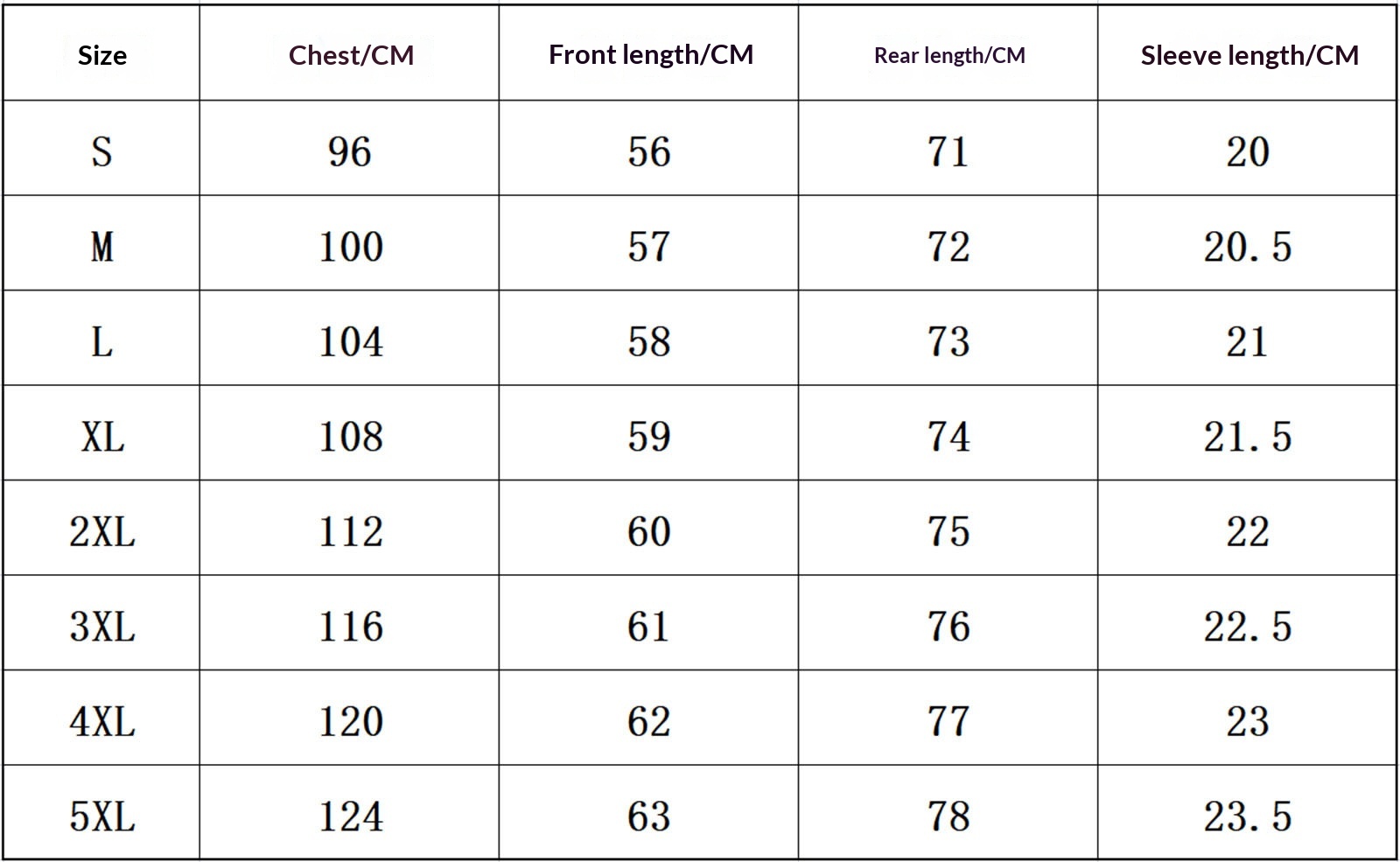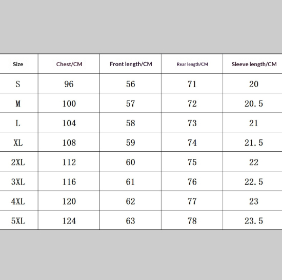 Sizes: S, M, L, XL, 2XL, 3XL, 4XL, 5XL