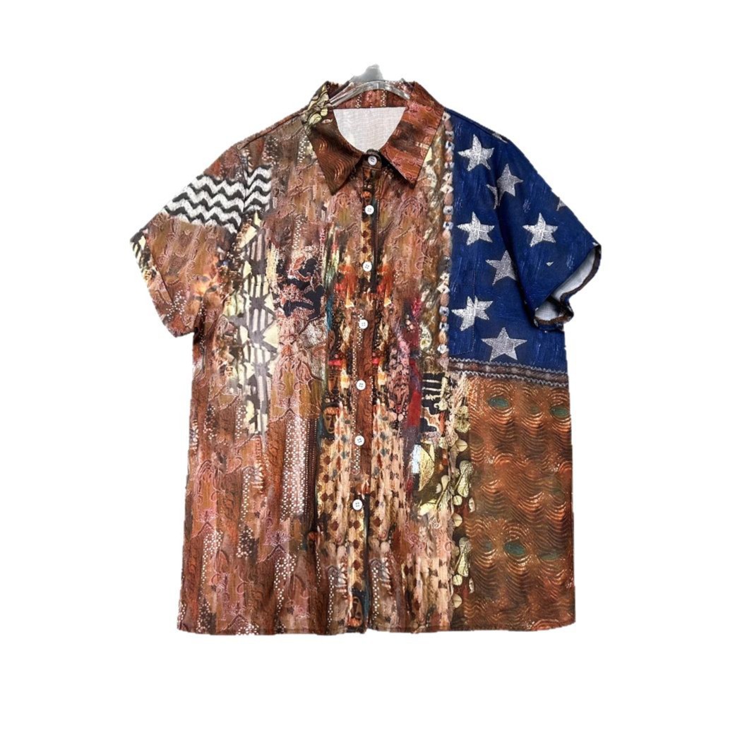 Casual Plus Size Vintage Print Short-sleeved Casual Top