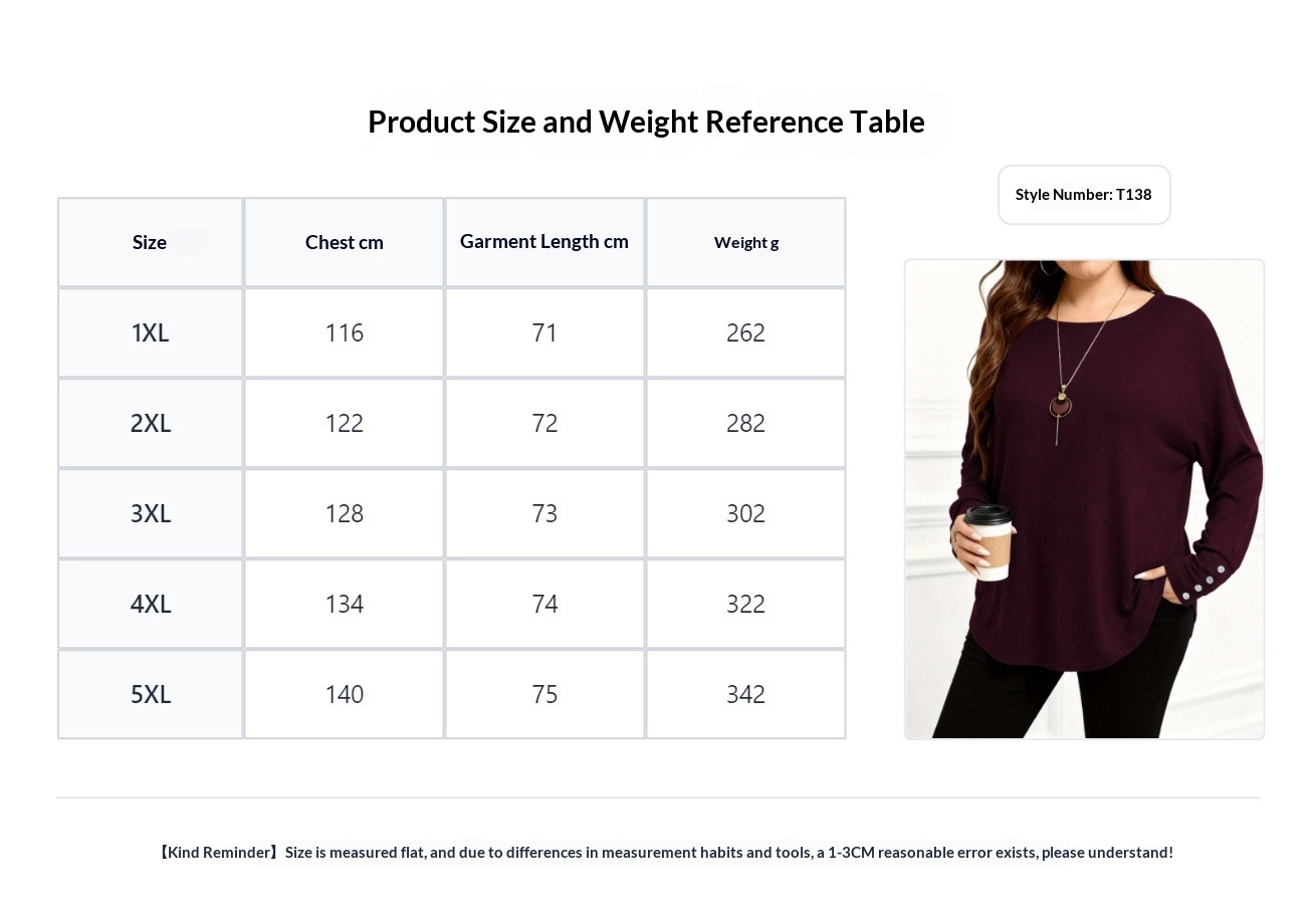 Sizes: 1XL, 2XL, 3XL, 4XL, 5XL