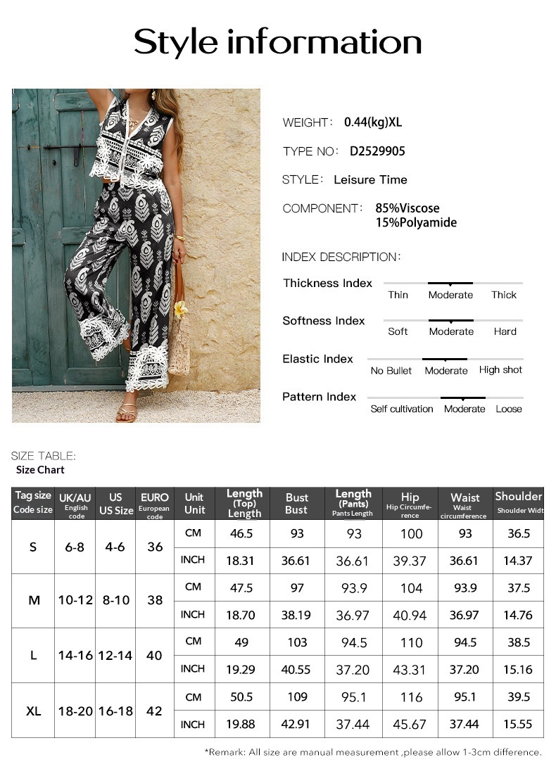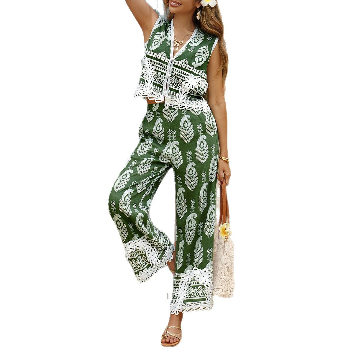 Casual Printed Color-block Vest Top And Pants Set Women's Clothing