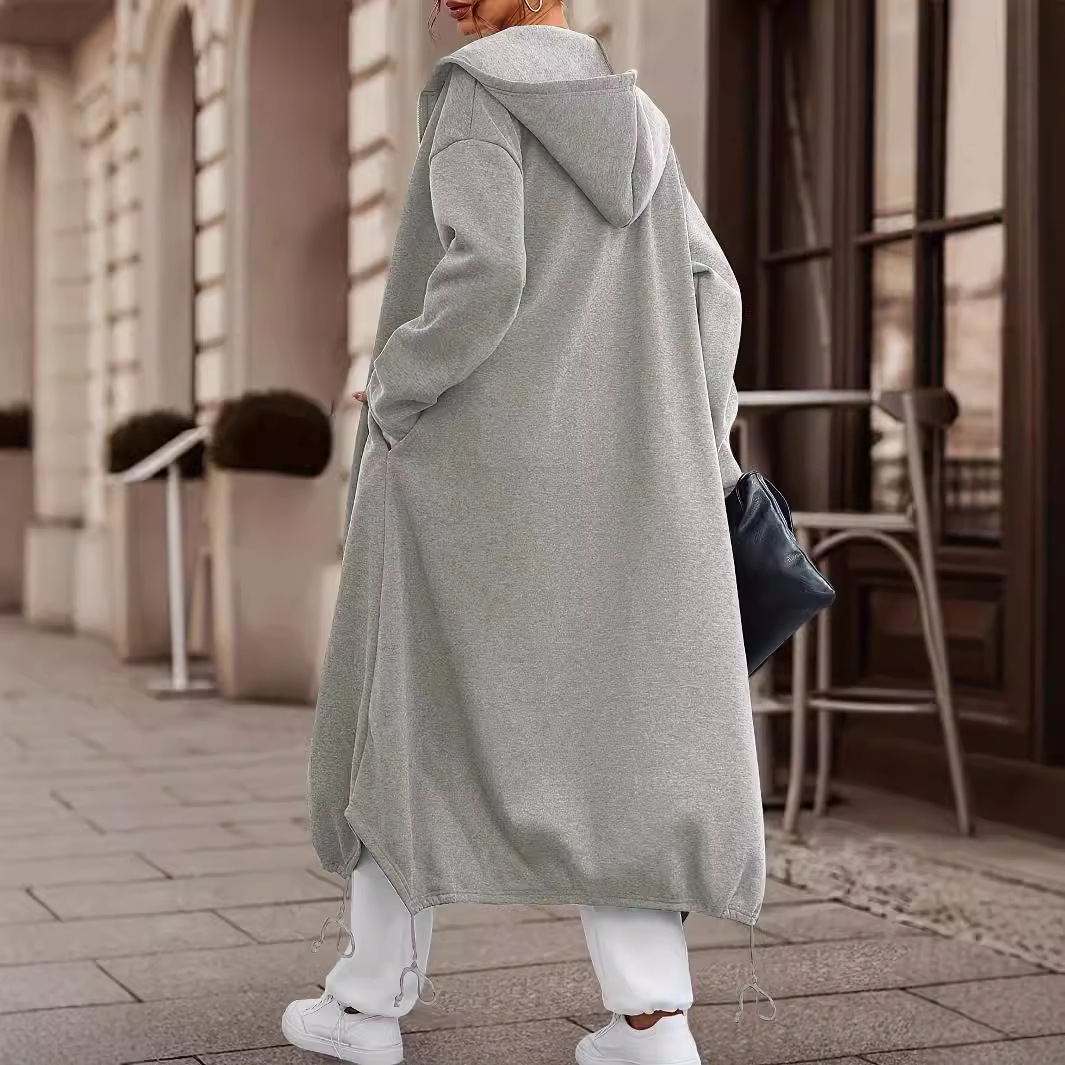 Casual Pure Color Thickened Long Coat For Women