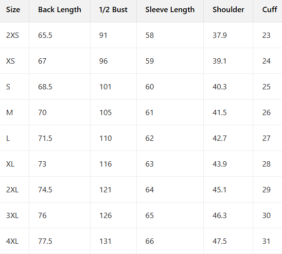 Sizes: S, M, L, XL, 2XL, 3XL, 4XL, 5XL