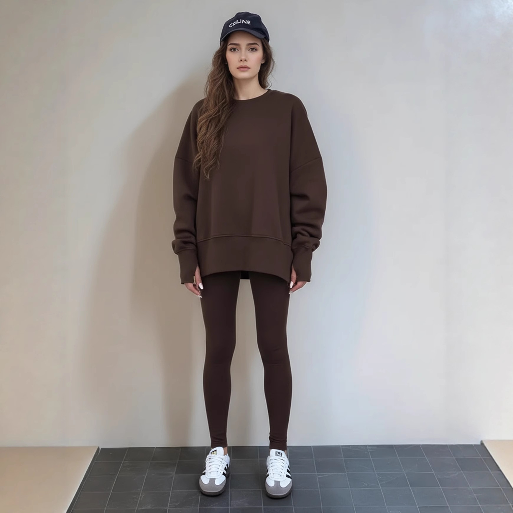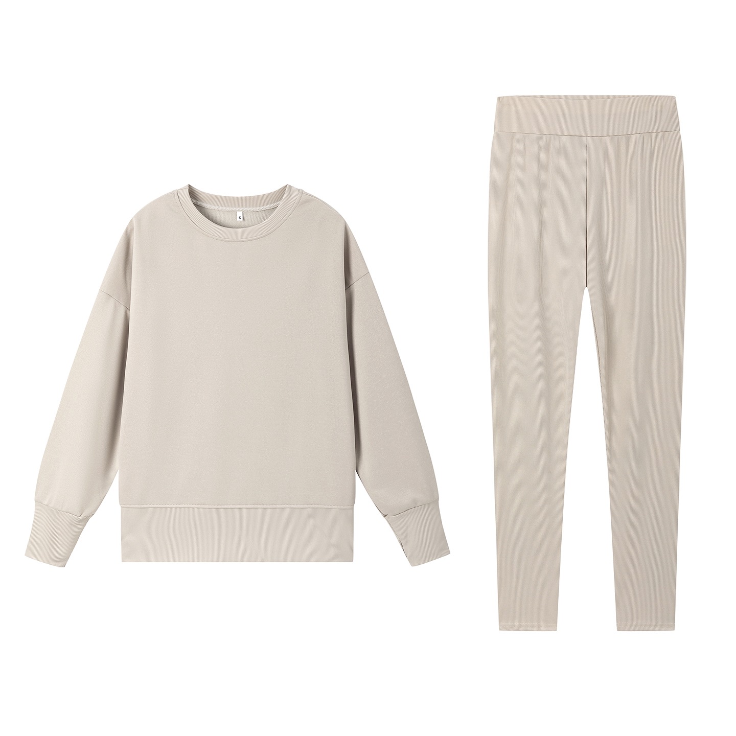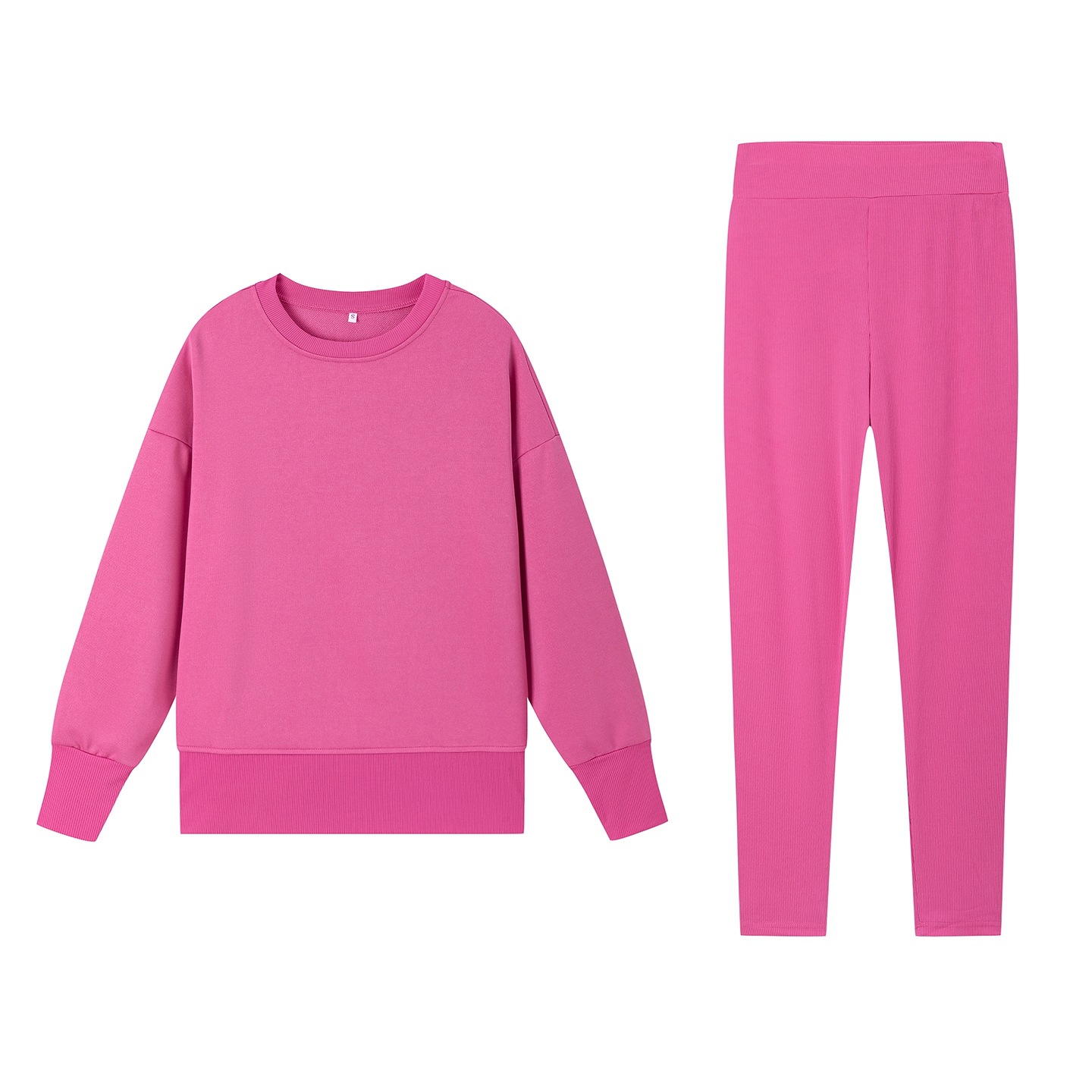 Casual Relaxed Fit Long Sleeve Crew Neck Top With Side Slits Paired With Matching Sweatpants