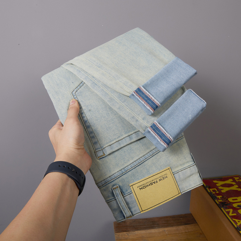 Casual Retro Korean Style Slim-fitting Ankle-tied Stretch Men's Jeans