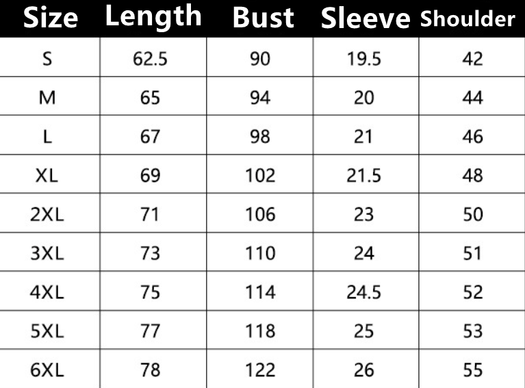 Size: S, M, L, XL, XXL, XXXL, XXXXL, 5xl, 6xl