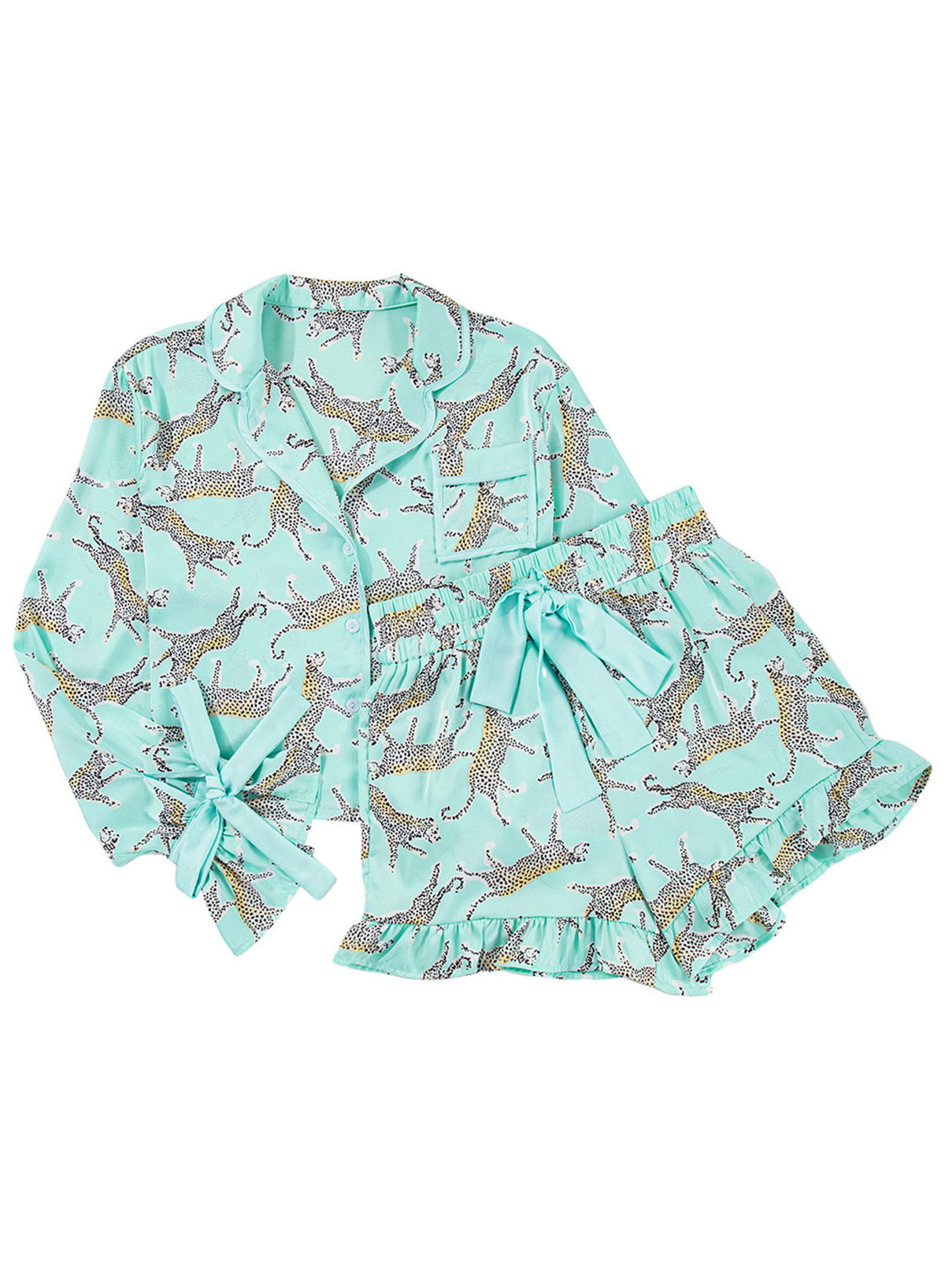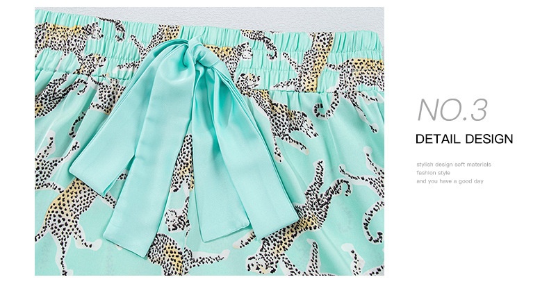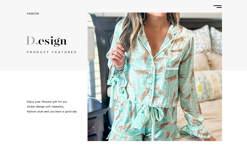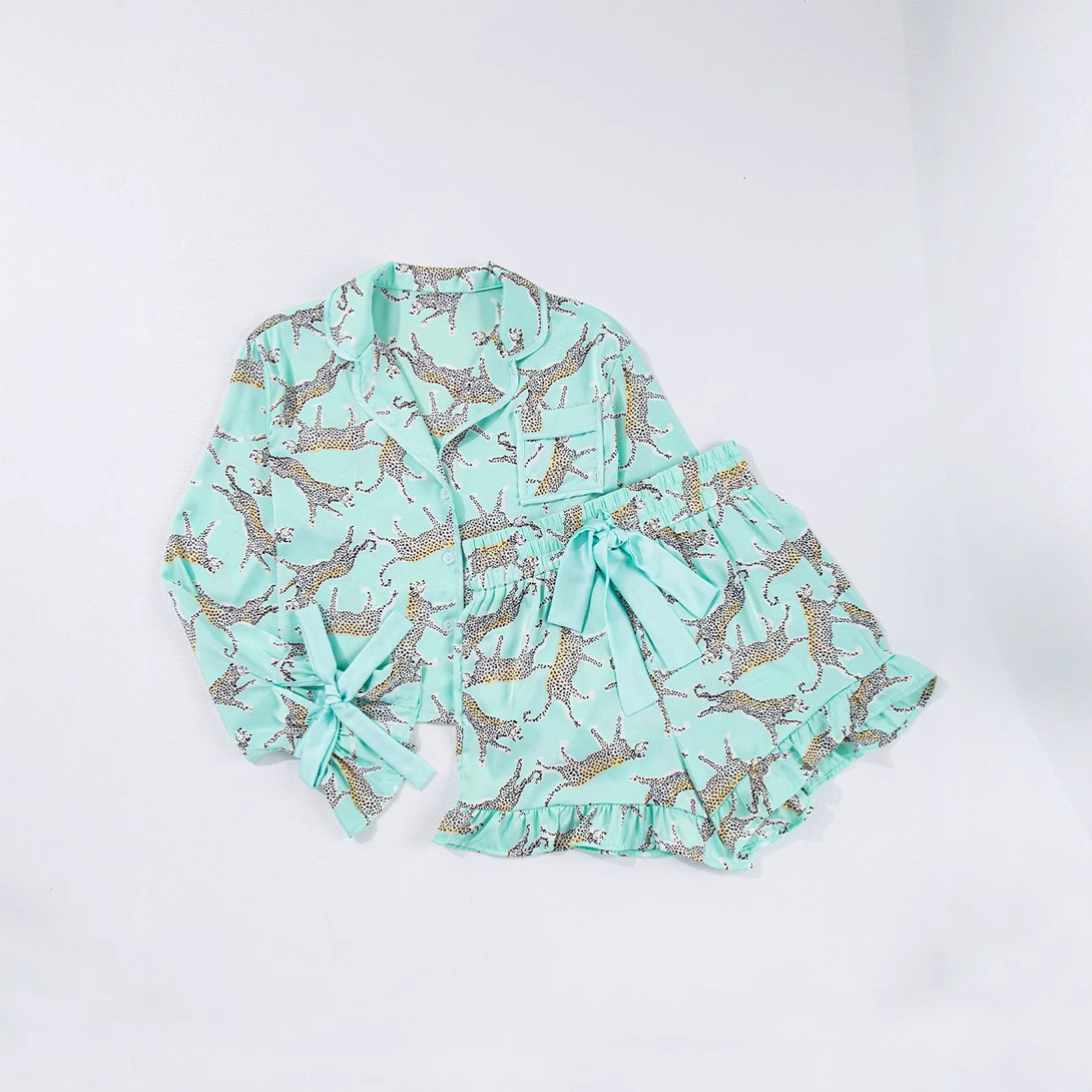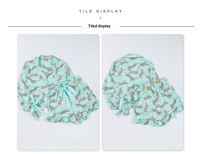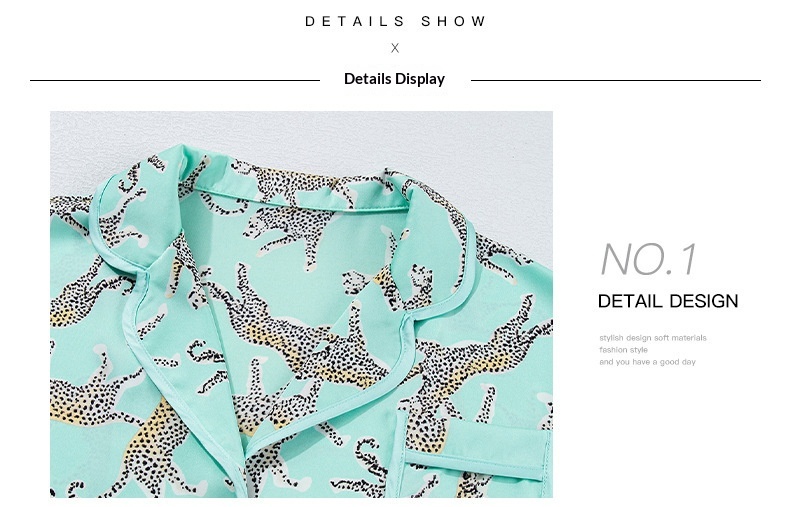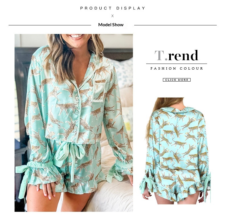 Casual Satin Pajama Set For Women Leopard-Print Long Sleeves And Shorts