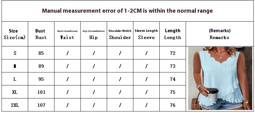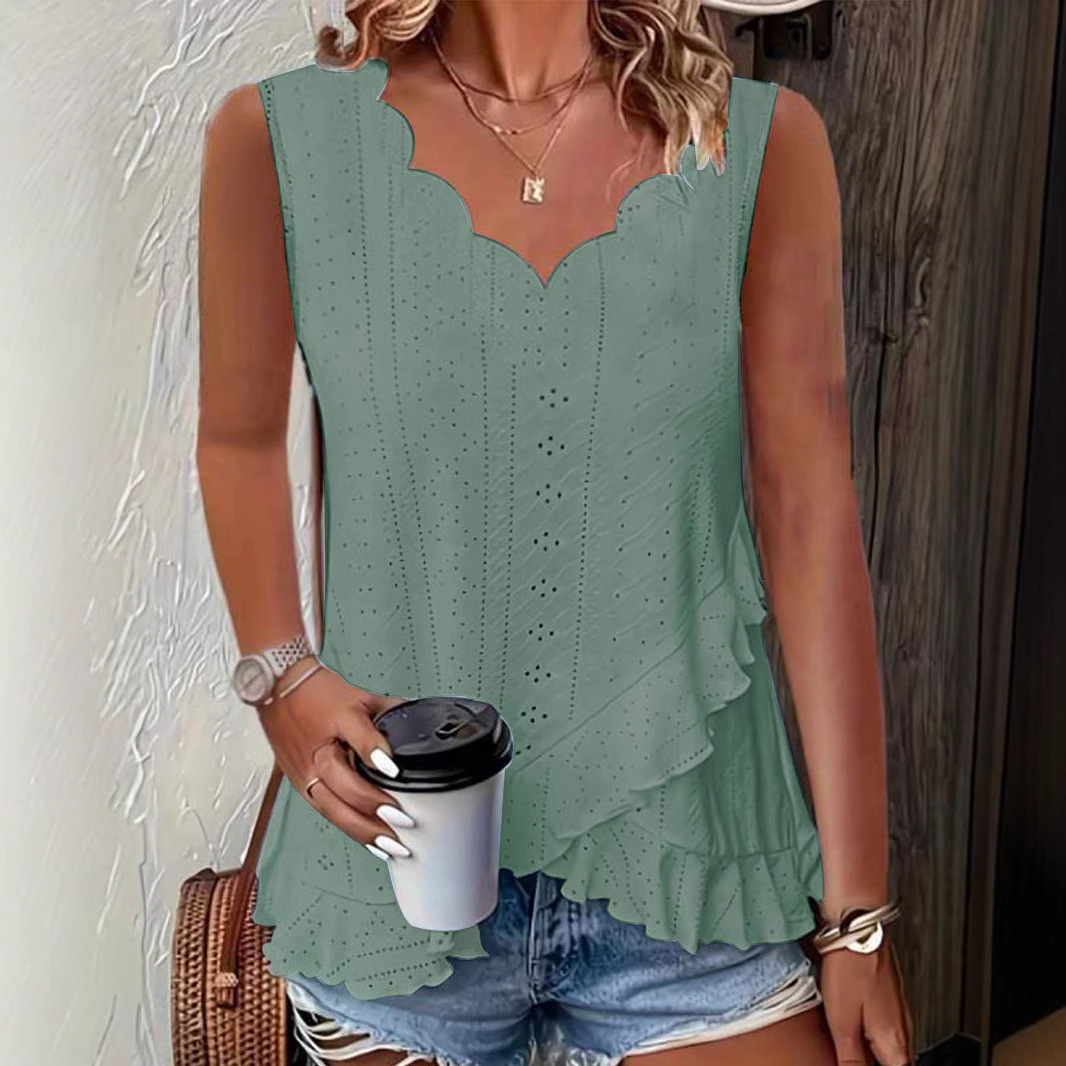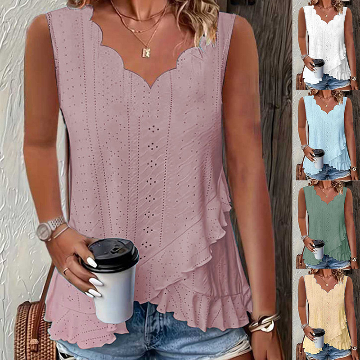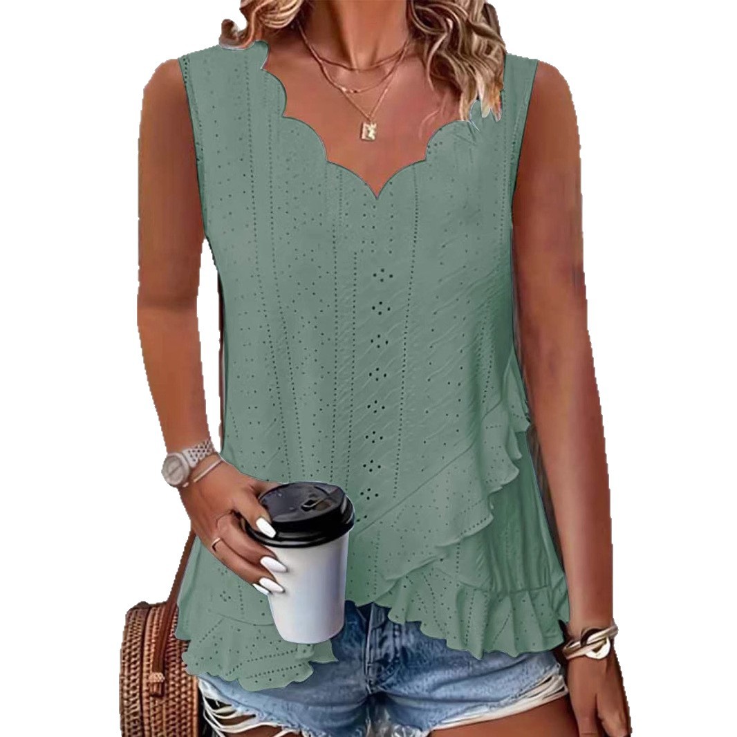 Popular elements: casual solid color figured cloth scalloped V-neck