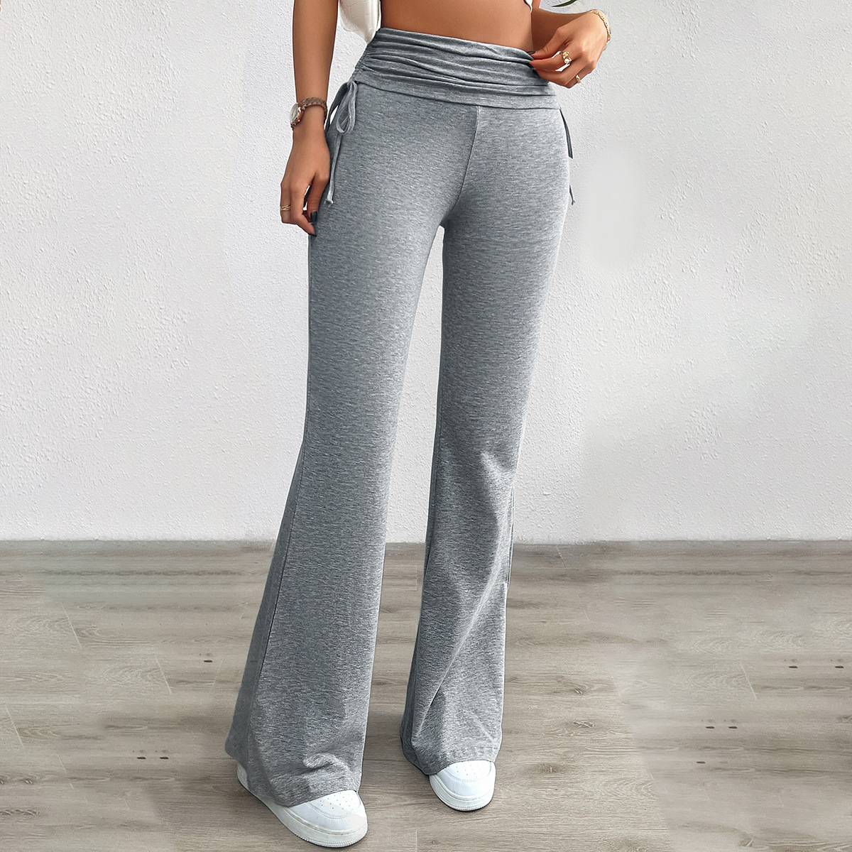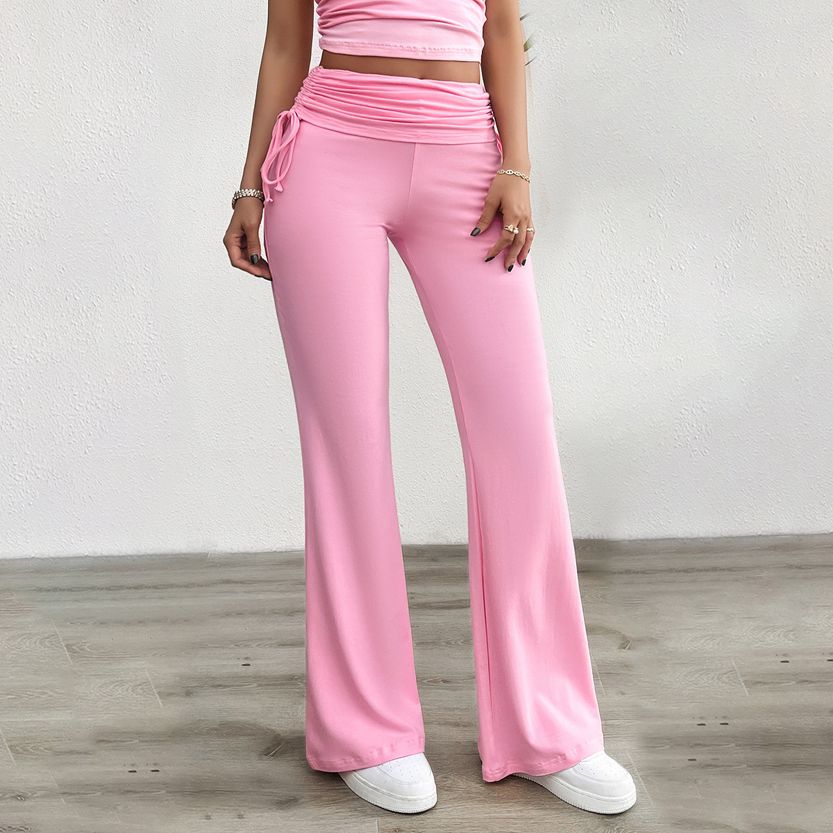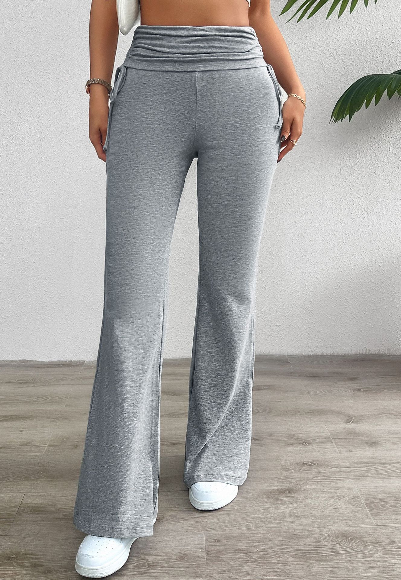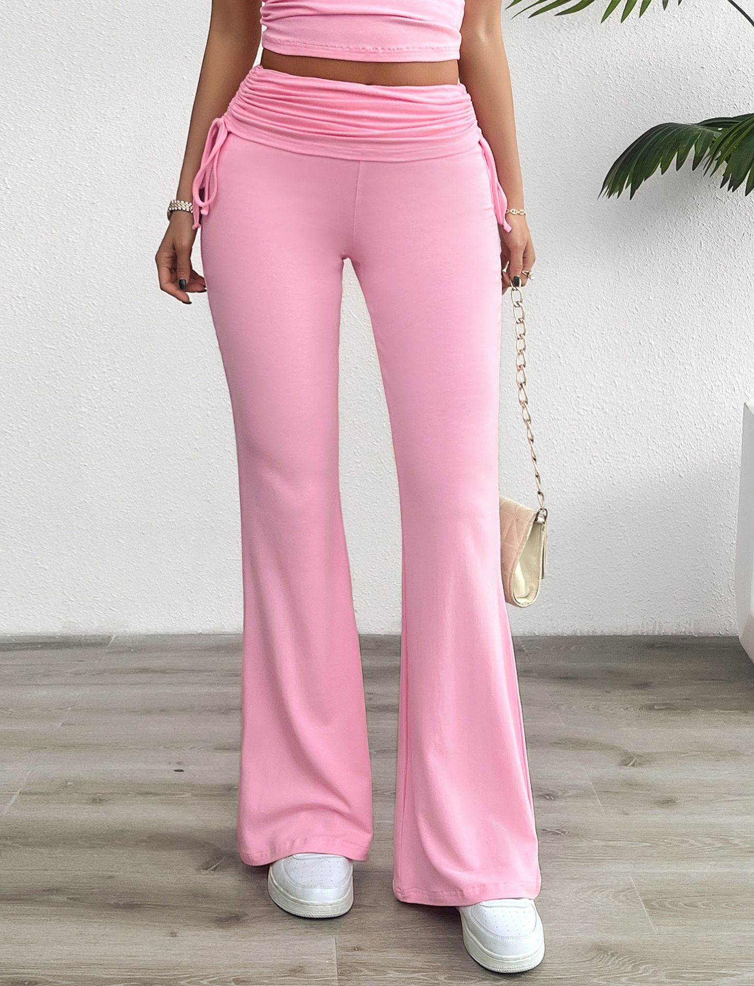 Casual Solid Color Slim Fit Pleating Trousers