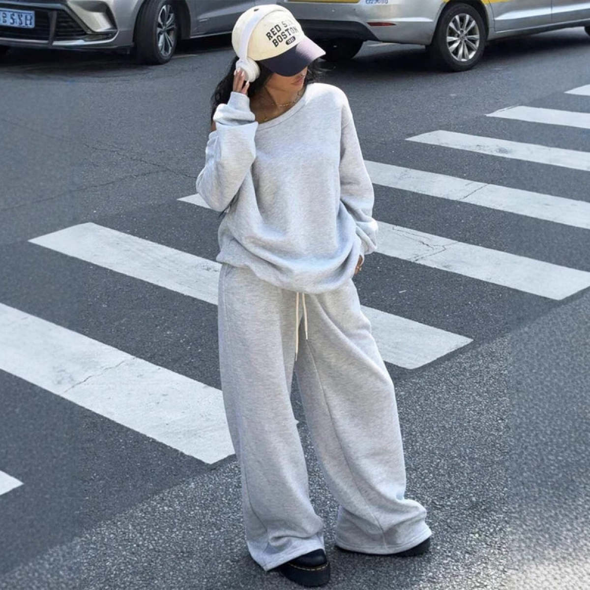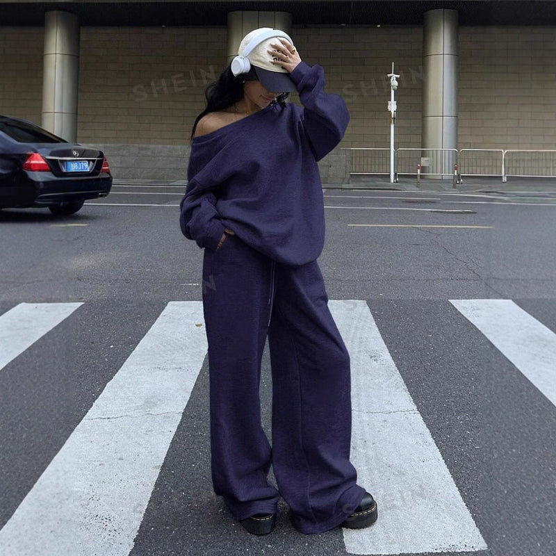 Casual Sports Style Round Neck Loose Hoodie And Casual Pants Set For Women