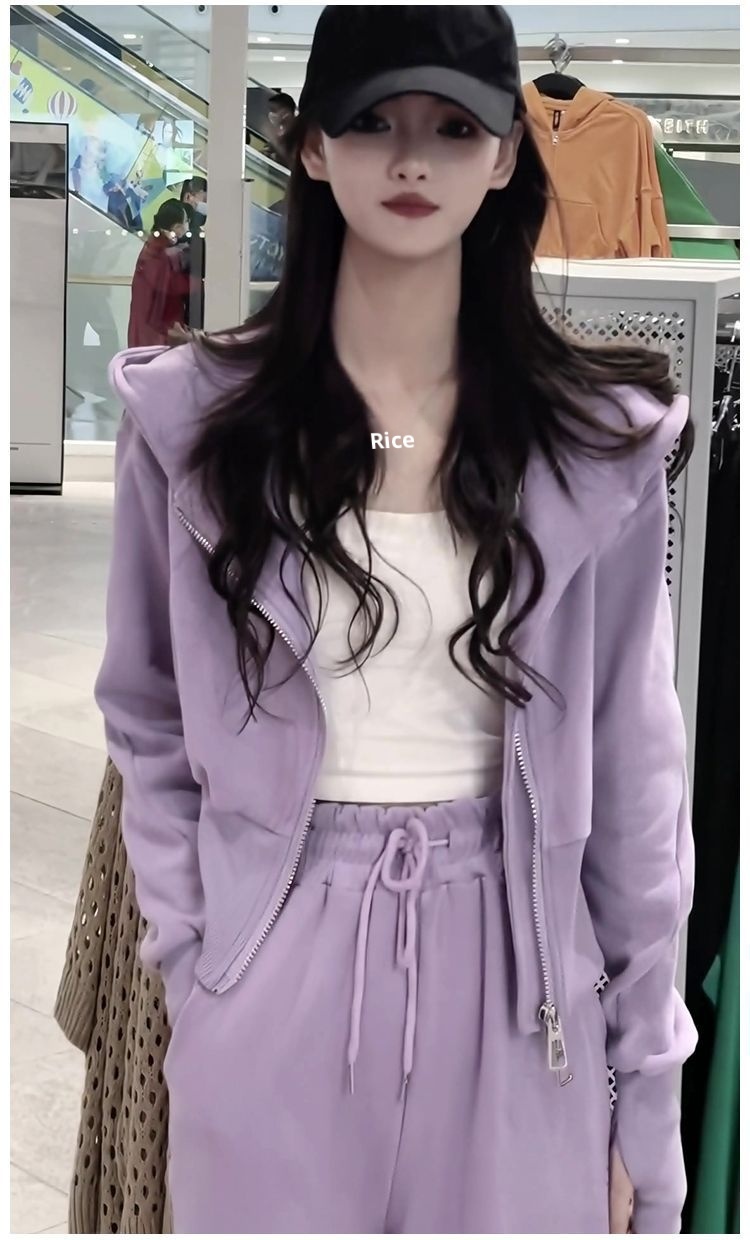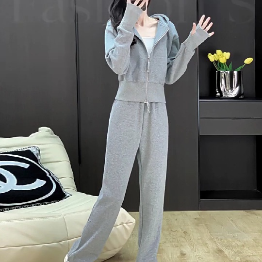 Casual Sports Suit Hooded Sweatshirt Wide-leg Pants