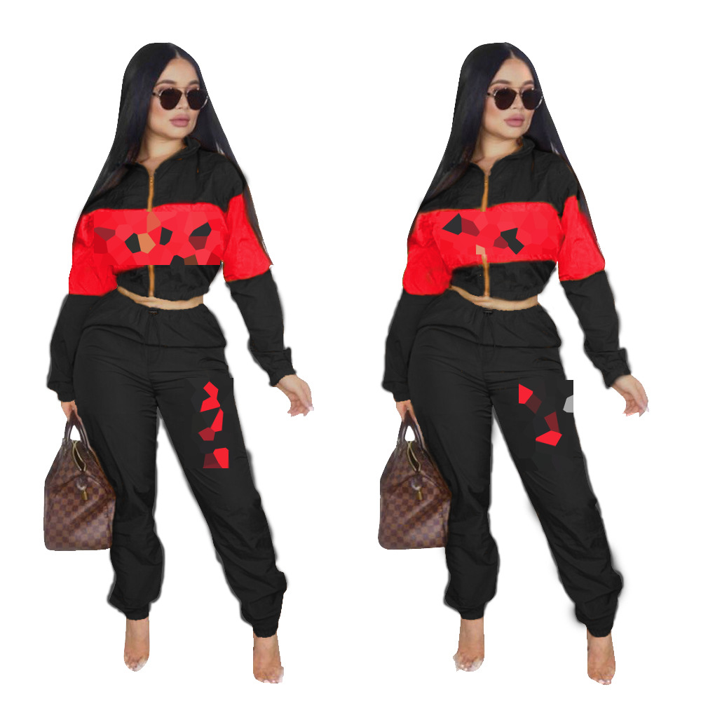 Casual Sports Two-color Stitching Printing Letter Long Sleeve Two-piece Set
