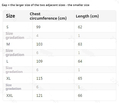 Sizes: S, M, L, XL, XXL