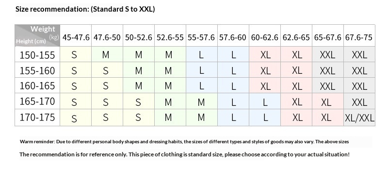 1. Asian sizes are 1 to 2 sizes smaller than European and American people. Choose the larger size if your size between two sizes. Please allow 2-3cm differences due to manual measurement. 2. Please check the size chart carefully before you buy the item, if you don't know how to choose size, please contact our customer service. 3.As you know, the different computers display colors differently, the color of the actual item may vary slightly from the following images.