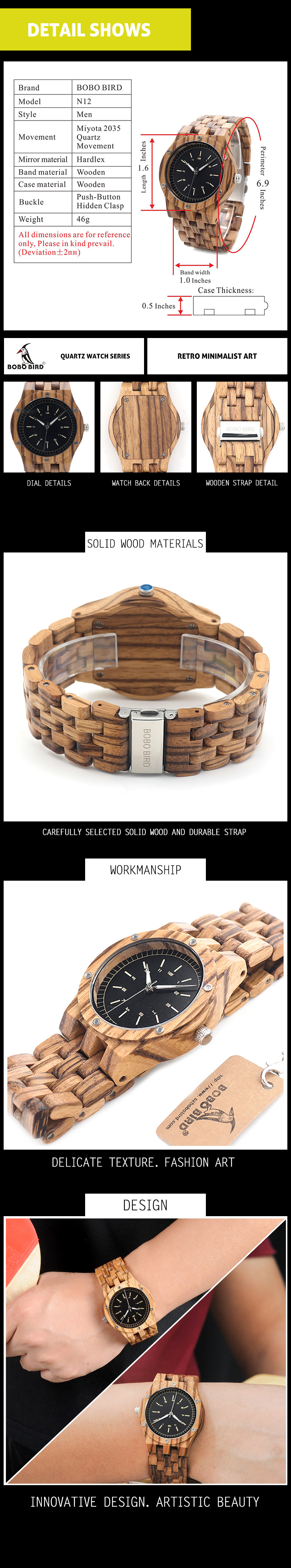 Casual Wooden Watch Men's Watch Pastoral Unique Quartz All Wooden Watch