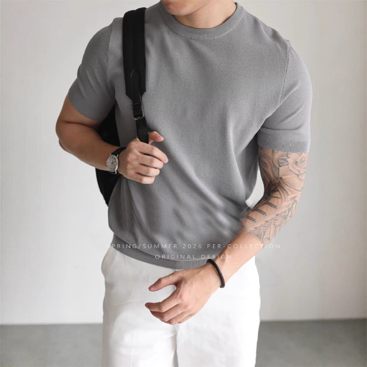 Colors: Light gray mock-neck ice silk T-shirt, black mock-neck ice silk T-shirt, white mock-neck ice silk T-shirt, dark gray mock-neck ice silk T-shirt, navy blue mock-neck ice silk T-shirt, camel mock-neck ice silk T-shirt, coffee mock-neck ice silk T-shirt, wine red mock-neck ice silk T-shirt, caramel mock-neck ice silk T-shirt