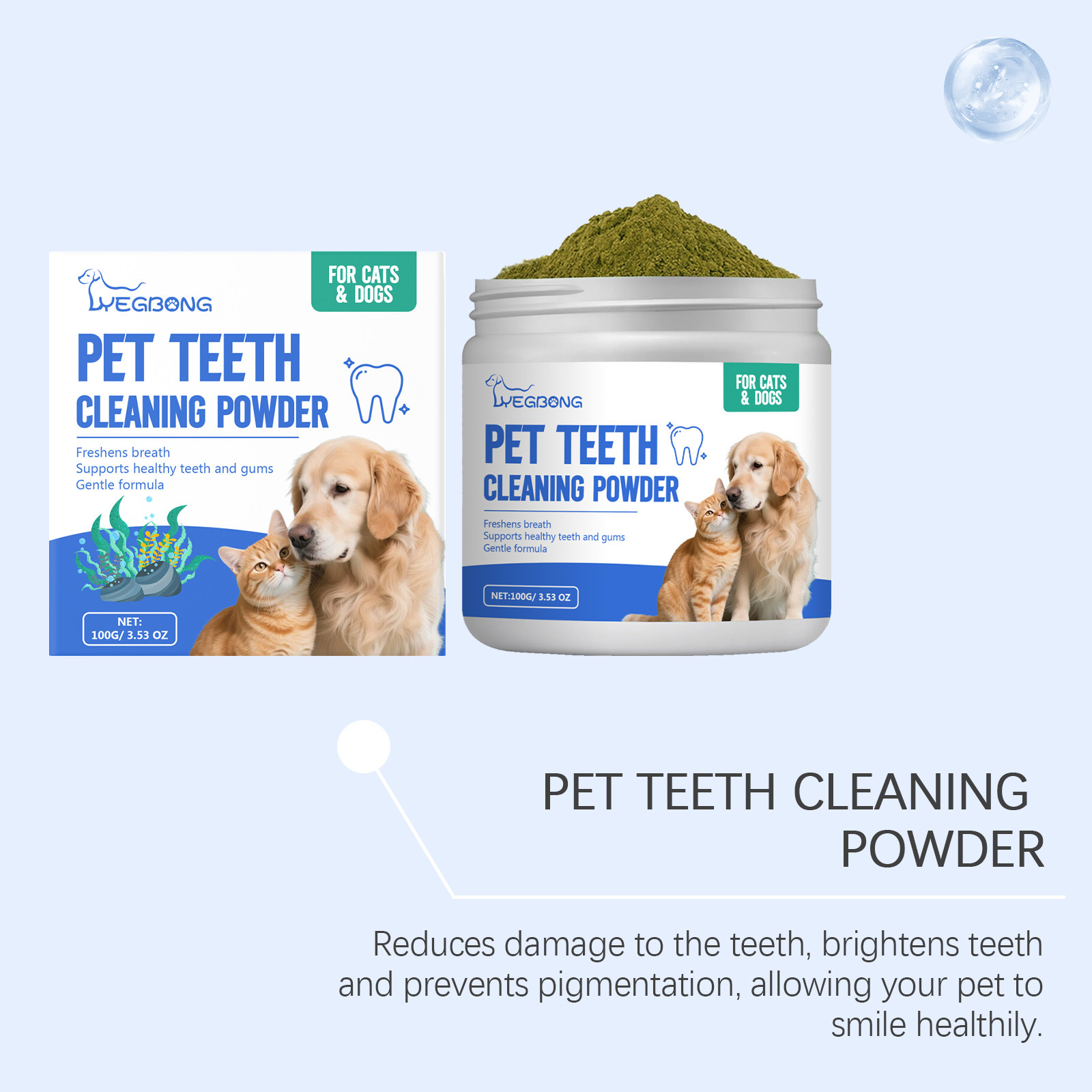 Ingredients: modified corn starch, sodium bicarbonate, sodium lauryl sulfate, sodium citrate, citric acid, sodium benzoate and menthol.