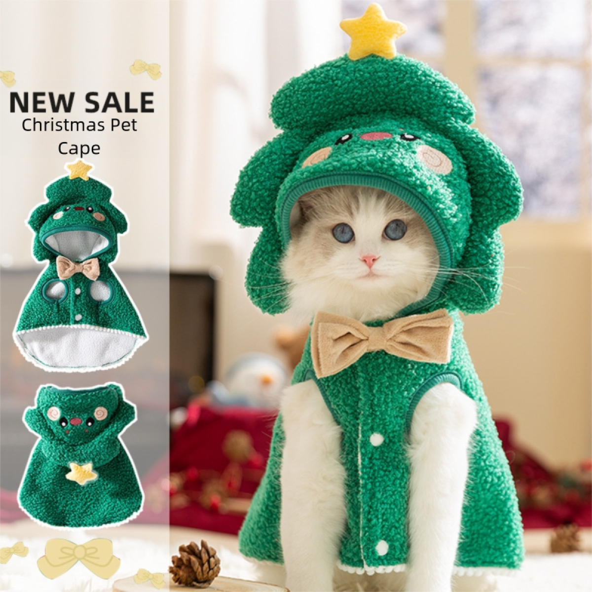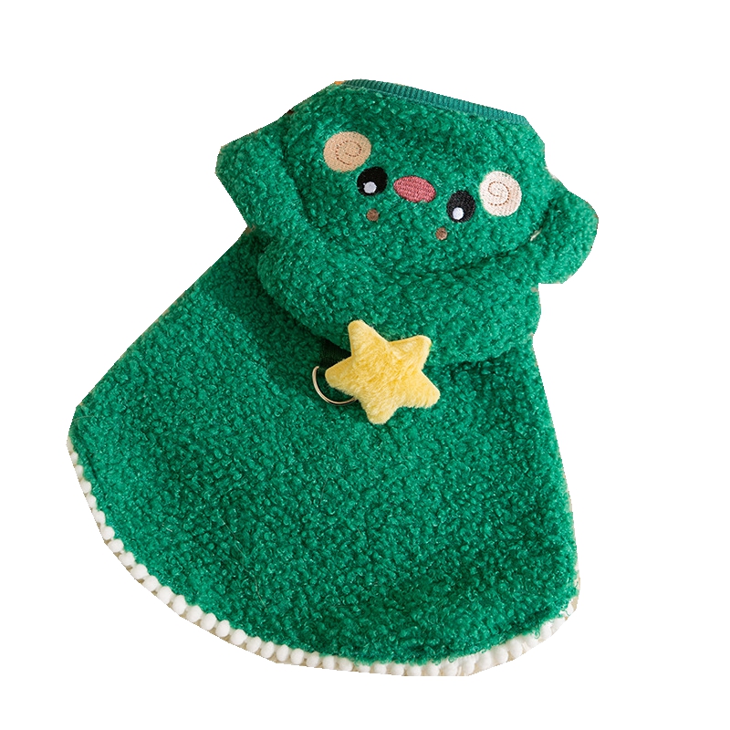 【 Christmas Dog and Cat Clothing 】 : A cape-style dog coat with a Christmas tree-shaped hat and a star on it. It is cute and festive, making your dog the focus of attention. The unique design adds a touch of charm to the festival