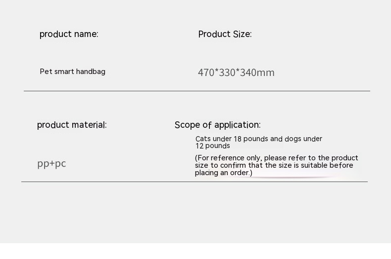 Scope of application: Cats weighing under 9KG and dogs weighing under 6KG