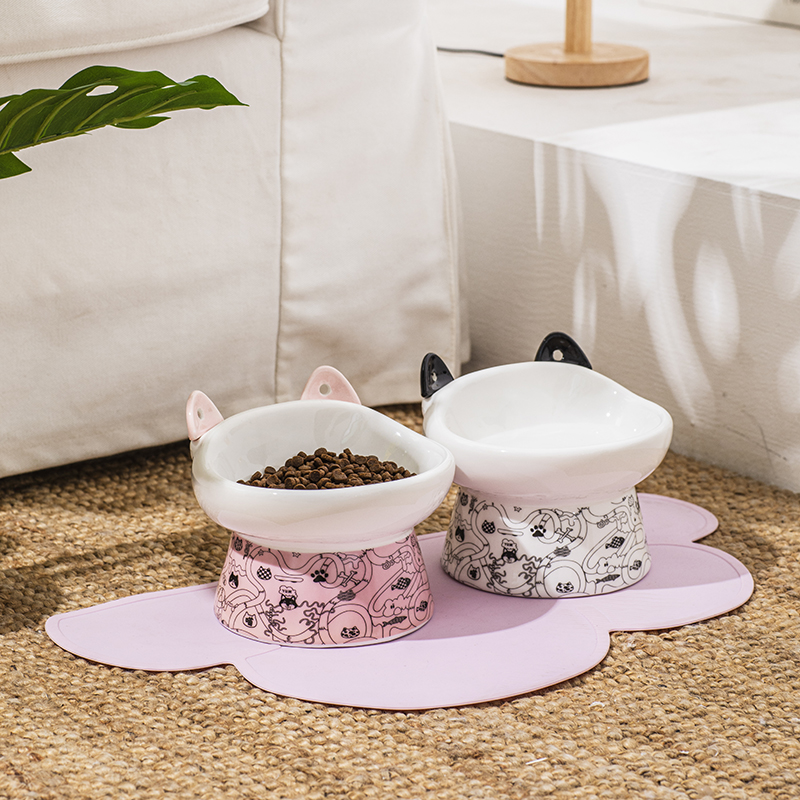Color classification: Green (with 2 green cat-ear spoons), yellow (with 2 yellow cat-ear spoons), pink (with 2 pink cat-ear spoons), black and white A (with 2 black cat-ear spoons), black and white B (with 2 black cat-ear spoons) 2 white cat ear spoons) yellow + black and white A (without pad) pink + yellow (without pad) green + black and white A + non-slip placemat yellow + black and white A + non-slip placemat pink + black and white A + non-slip placemat