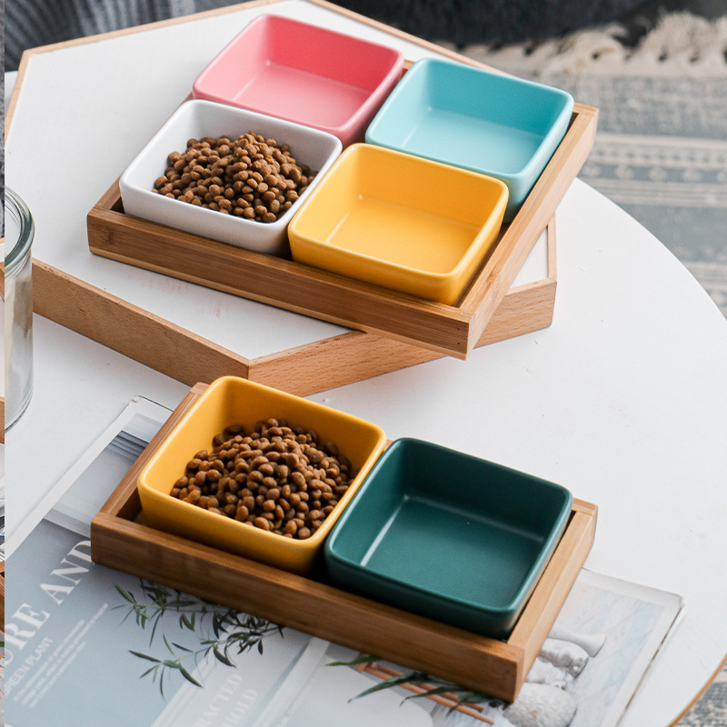 11style: yellow powder and white dish with three grid wooden support
