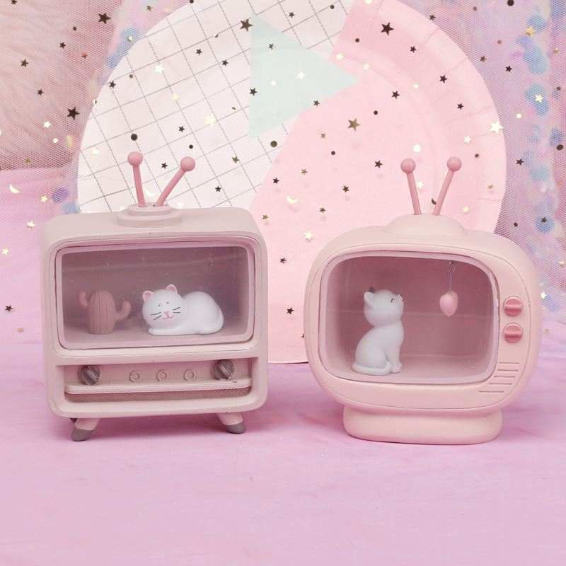Cute cat home decoration night light pink LED night light room decoration resin light mini light bedroom baby kids