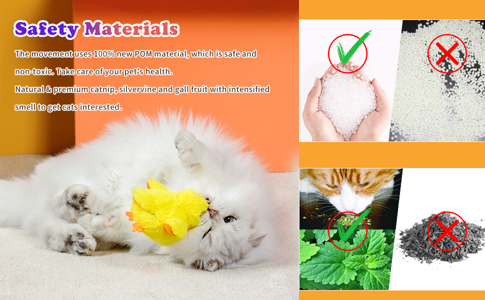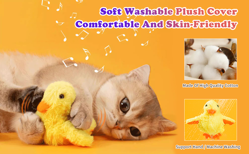 【Durable Catnip Toys】The movement steel-like hardness greatly improves the durability of the toy, The included chargeable mechanism is detachable for convenient cleaning of the plush pet toy. The duck will stay dormant and quiet to save battery power when left alone