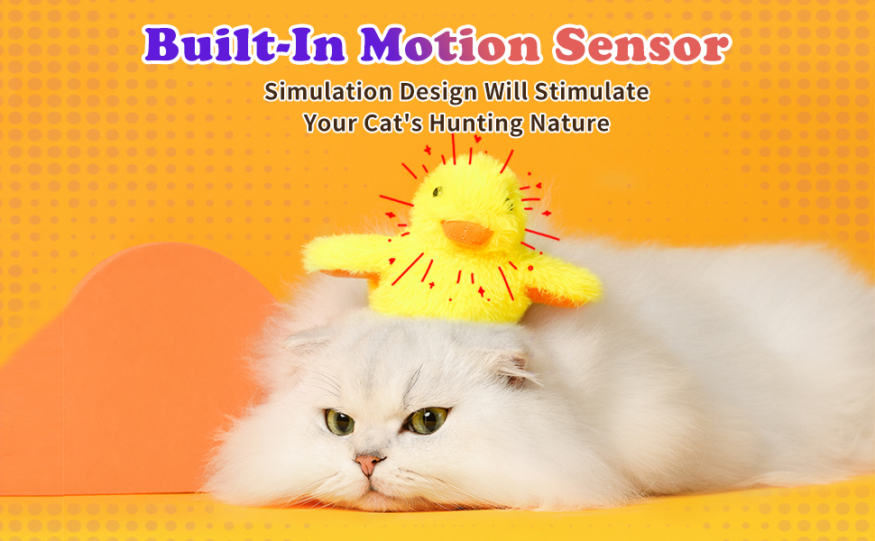 【Interactive Fun Toys for Cats】Our cat hunt toy lifelike quack chirping, Whenever your kitten touches or slaps the back of the duckling, the built-in automatic motion sensor will be activated, and the duckling will vibrate its wings and quack, thus attracting your cat to interact and play with it.