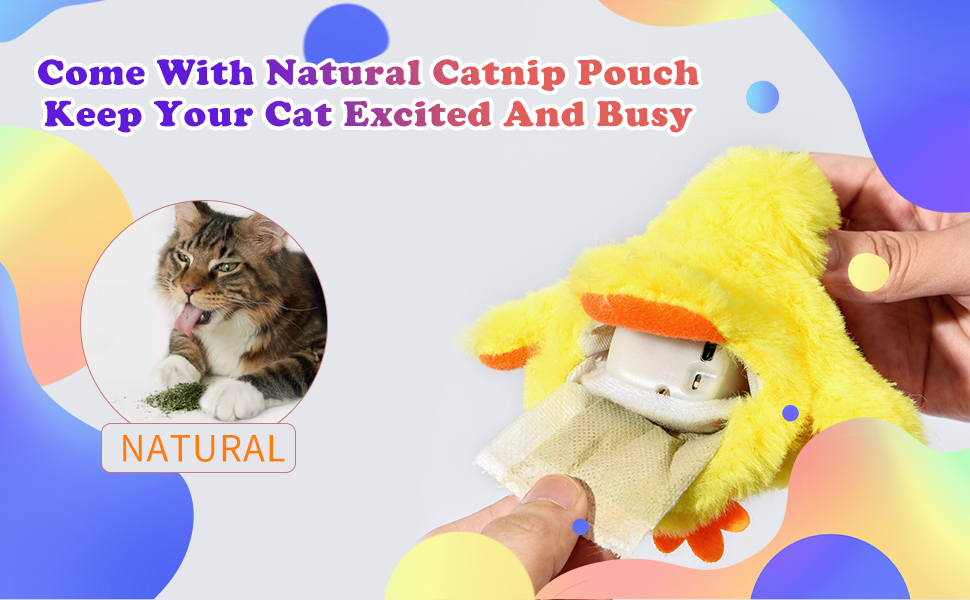 【Easy to Use】 Push the switch to ‘on’ to activate the chirpy cat toy, and the activated duckling cat toys will makes realistic sound and flap wings. Add extra fresh catnip pouch could be a great addition to making your cats playtime fun. Simply put the catnip pouch inside the duck body, cats will go crazy for it.