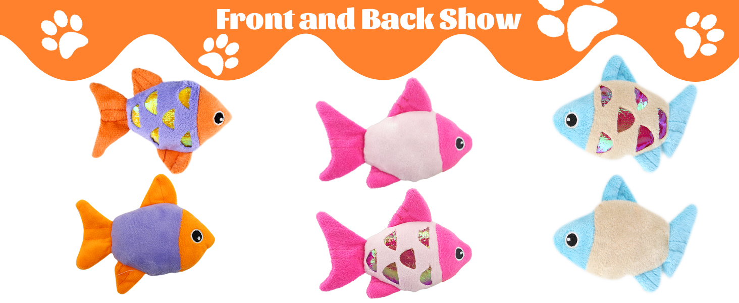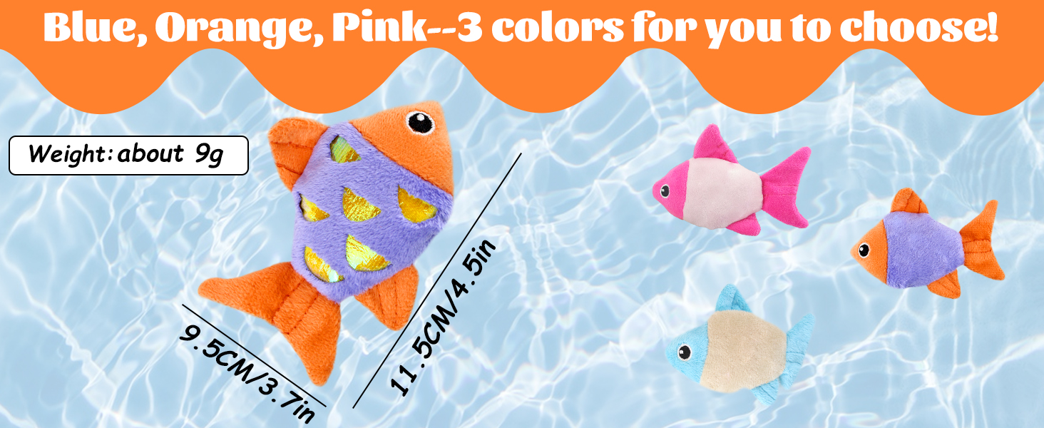 Cute Fish Shape Cat Toy Sets: Two goldfish in one package. Their cute appearance can stimulate your cats to hunt and fetch. At the same time, it releases your cat's instinct and lets your cats do more activity