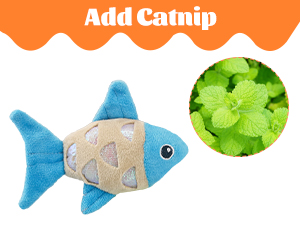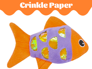 Cat Interactive Toys that Make Sound: Our kitten fish toy is small and exquisite. There is a layer of crinkle paper on both sides. You can hold it with one hand to interact with your cat and increase the feelings between you and your cat