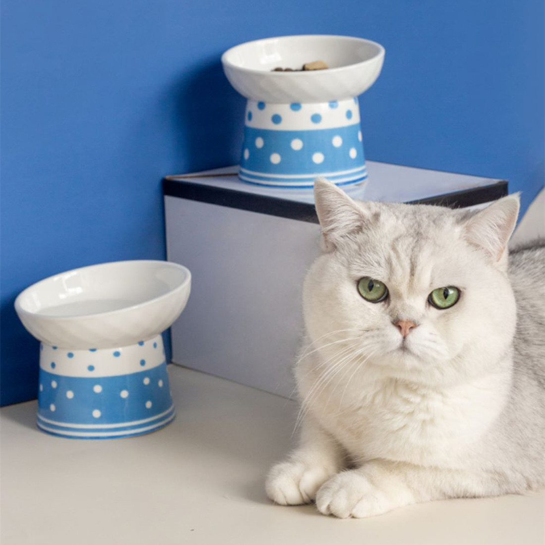 Product Name: Tall Polka Dot Cat Bowl
