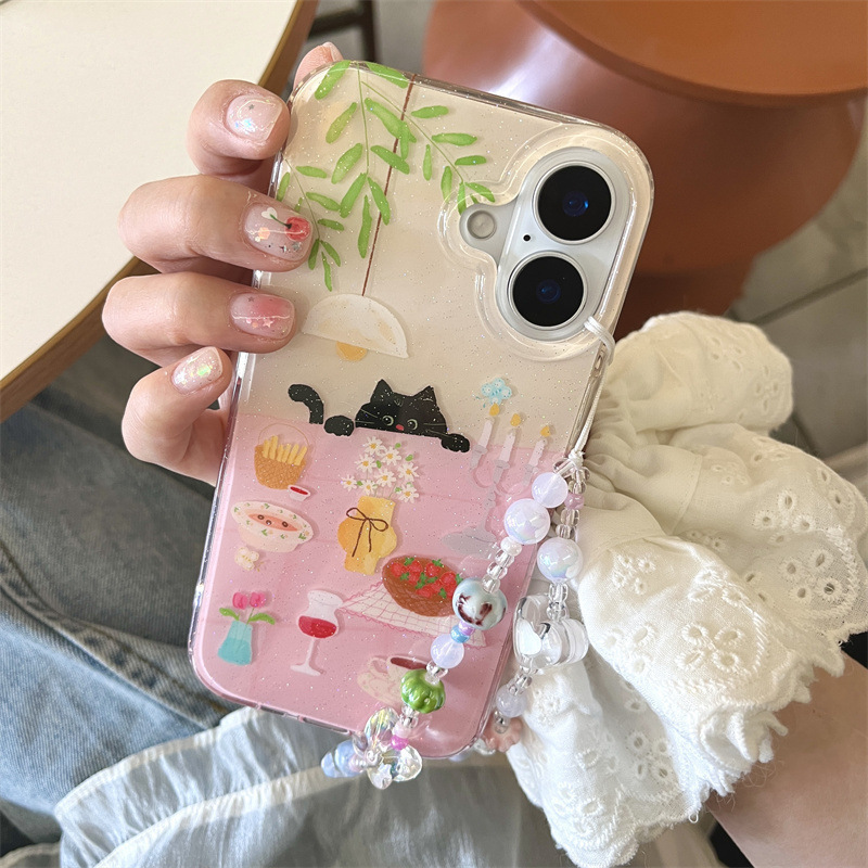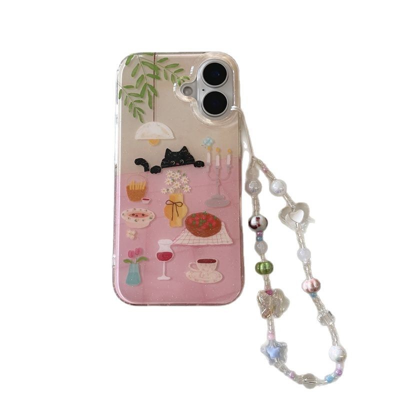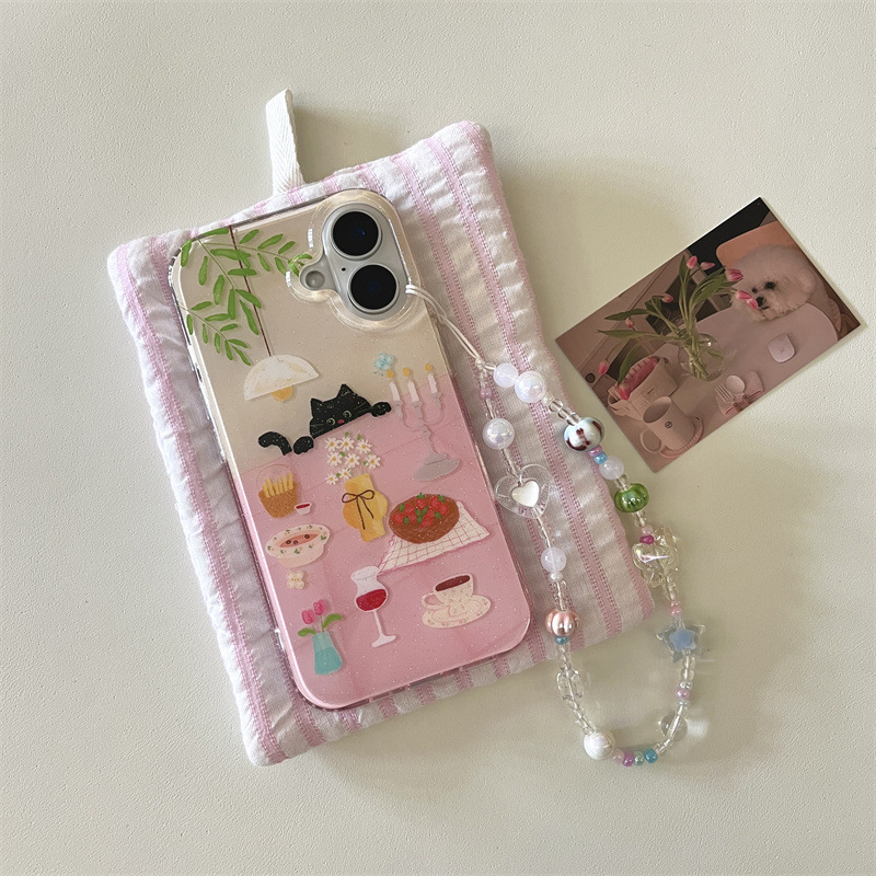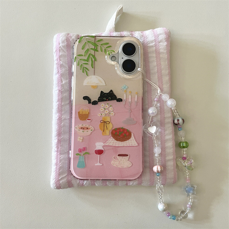 Color: Glitter candlestick table cat single phone case, glitter candlestick table cat phone case + lanyard
