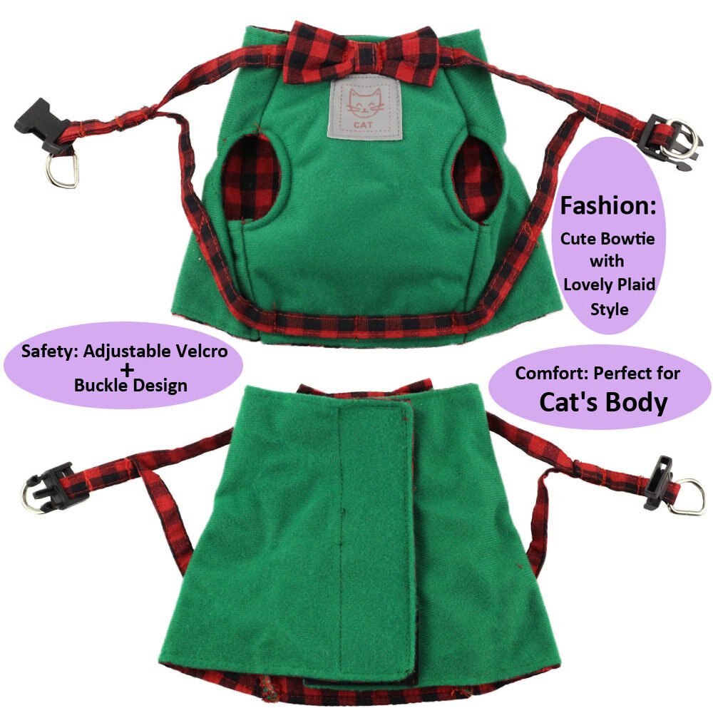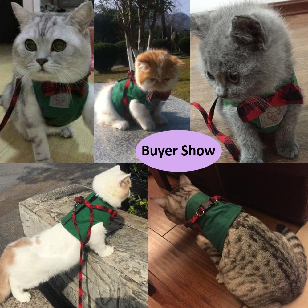 1. Made of soft cotton fabric, adjustable Velcro + buckle design to ensure your cat's safety when walking or running.