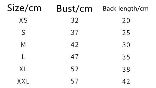 Size: XS (recommended weight 1-3 catties), S (recommended weight 3-5 catties), M (recommended weight 5-8 catties), L (recommended weight 8-11 catties), XL (recommended weight 11-15 catties ), XXL (recommended weight 15-20 catties)