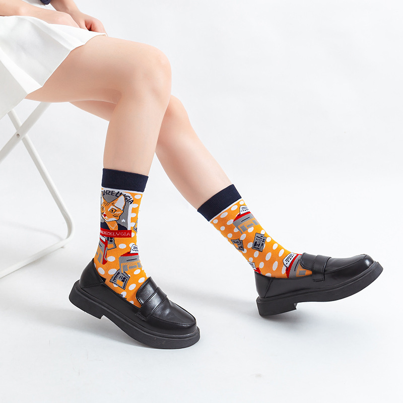 Cat Cute Cartoon Japanese Ladies Medium Tube Cotton Socks