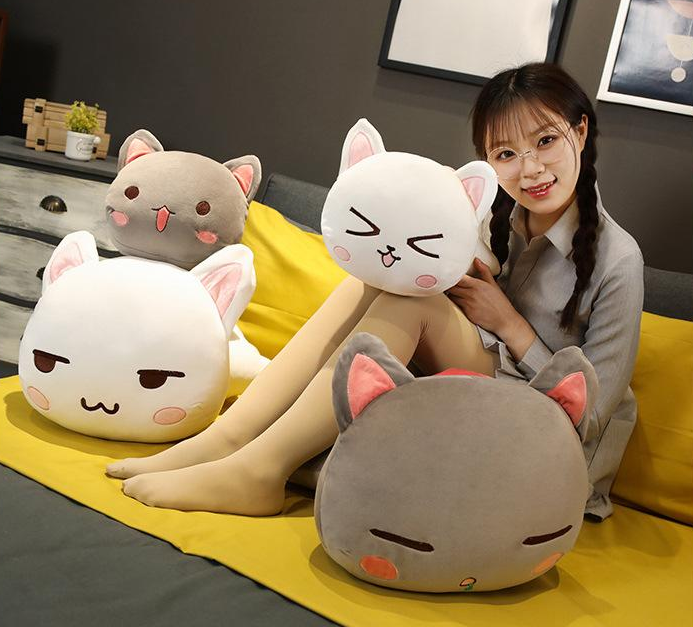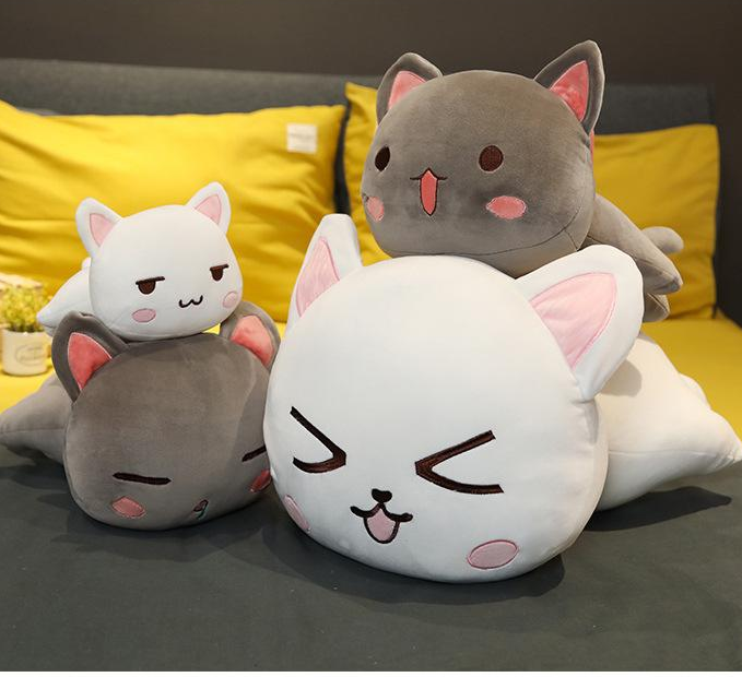 Color; white cat-cute, white cat-happy, gray cat-cute, gray cat-squinting